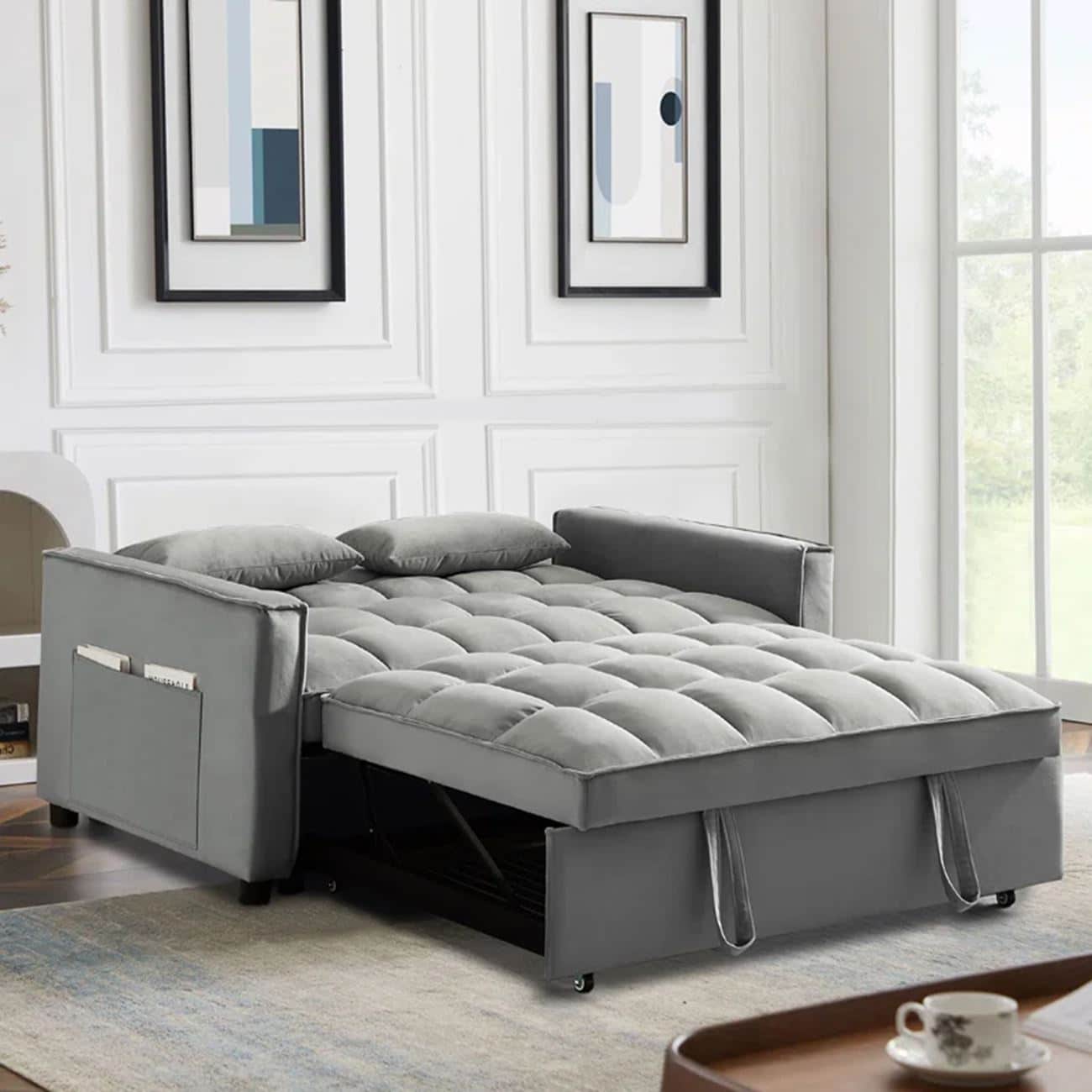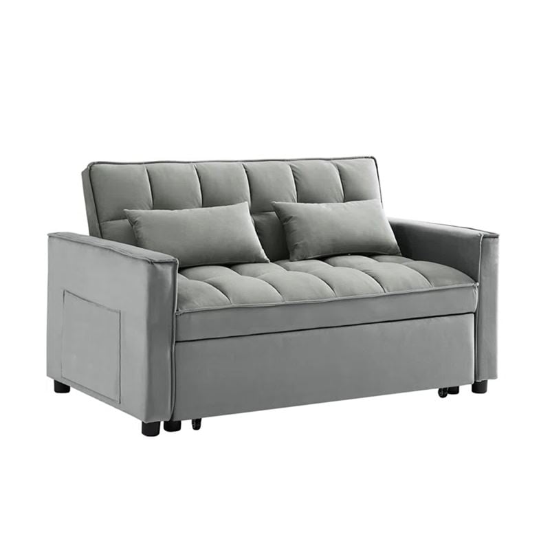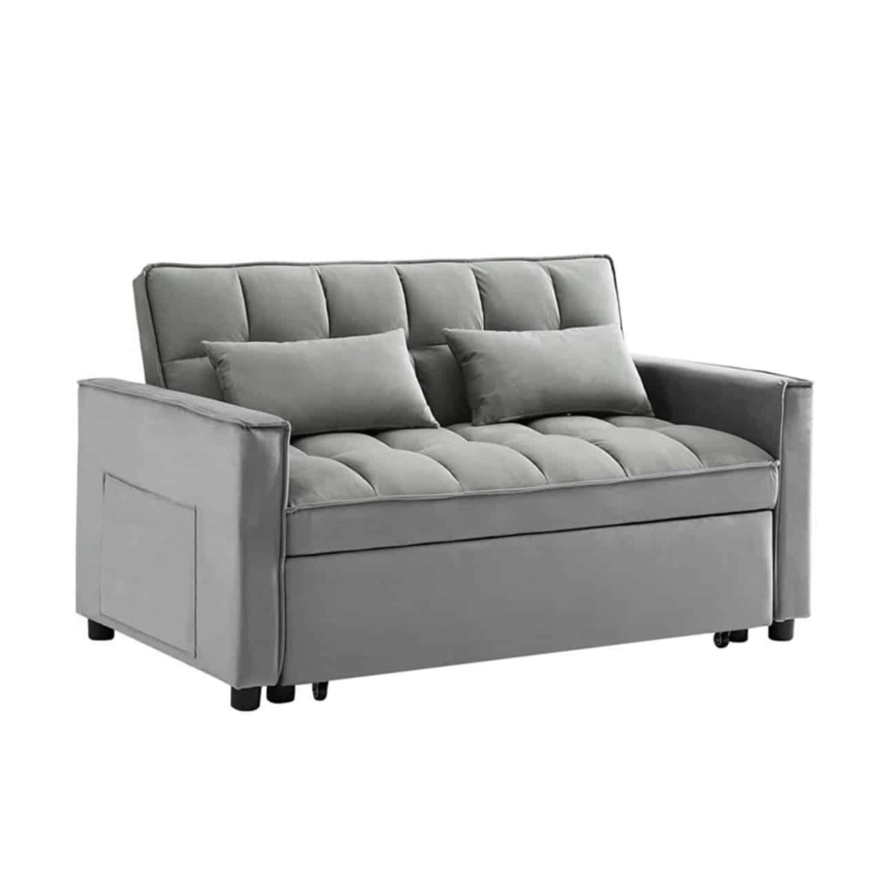 TEMPO Καναπές – Κρεβάτι, Με ανάκλιση πλάτης, Ύφασμα Velure Γκρι 140x95x80 – Κρεβάτι:120×178 cm