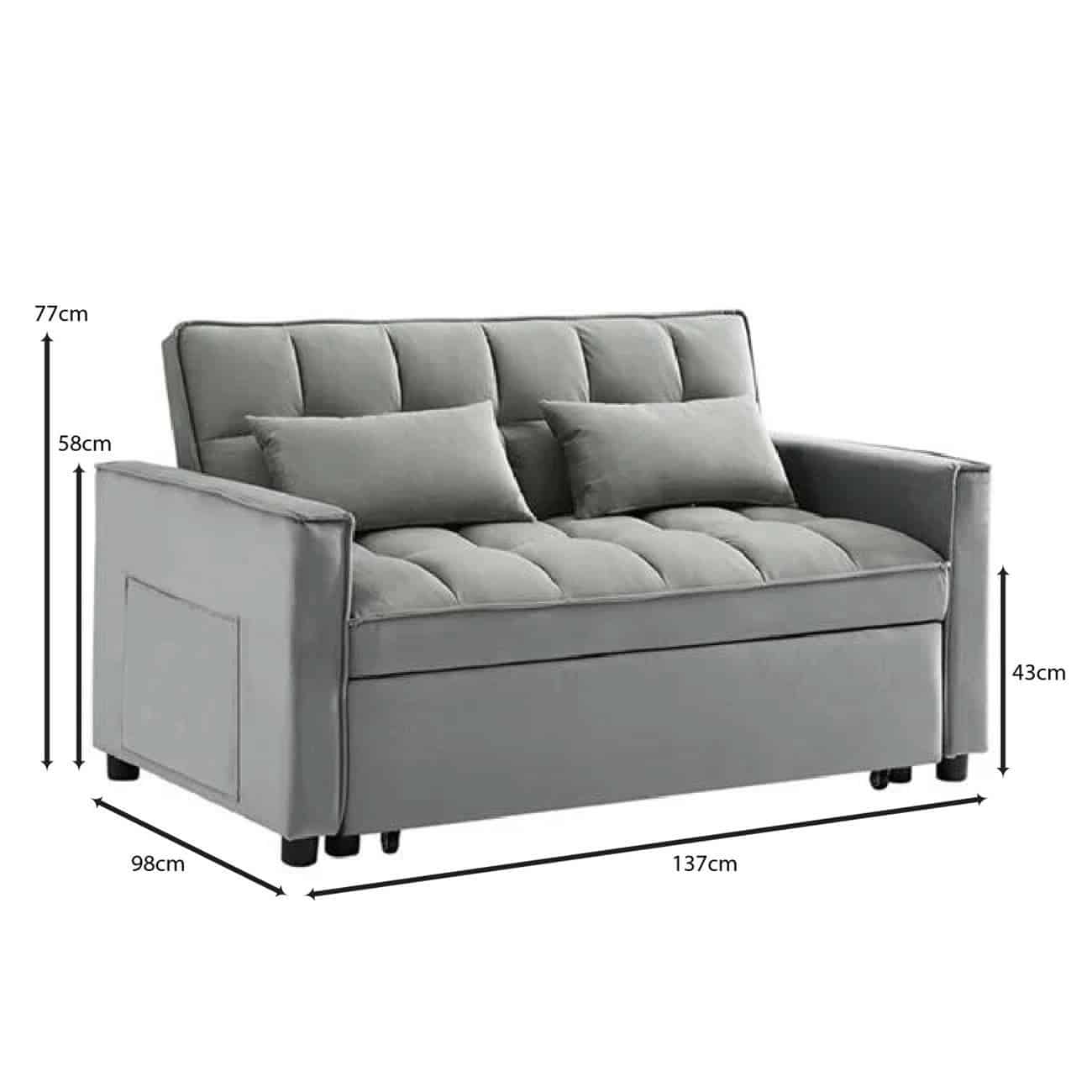 Ε998,1 TEMPO Καναπές Κρεβάτι Velure Γκρι 140x95x80cm