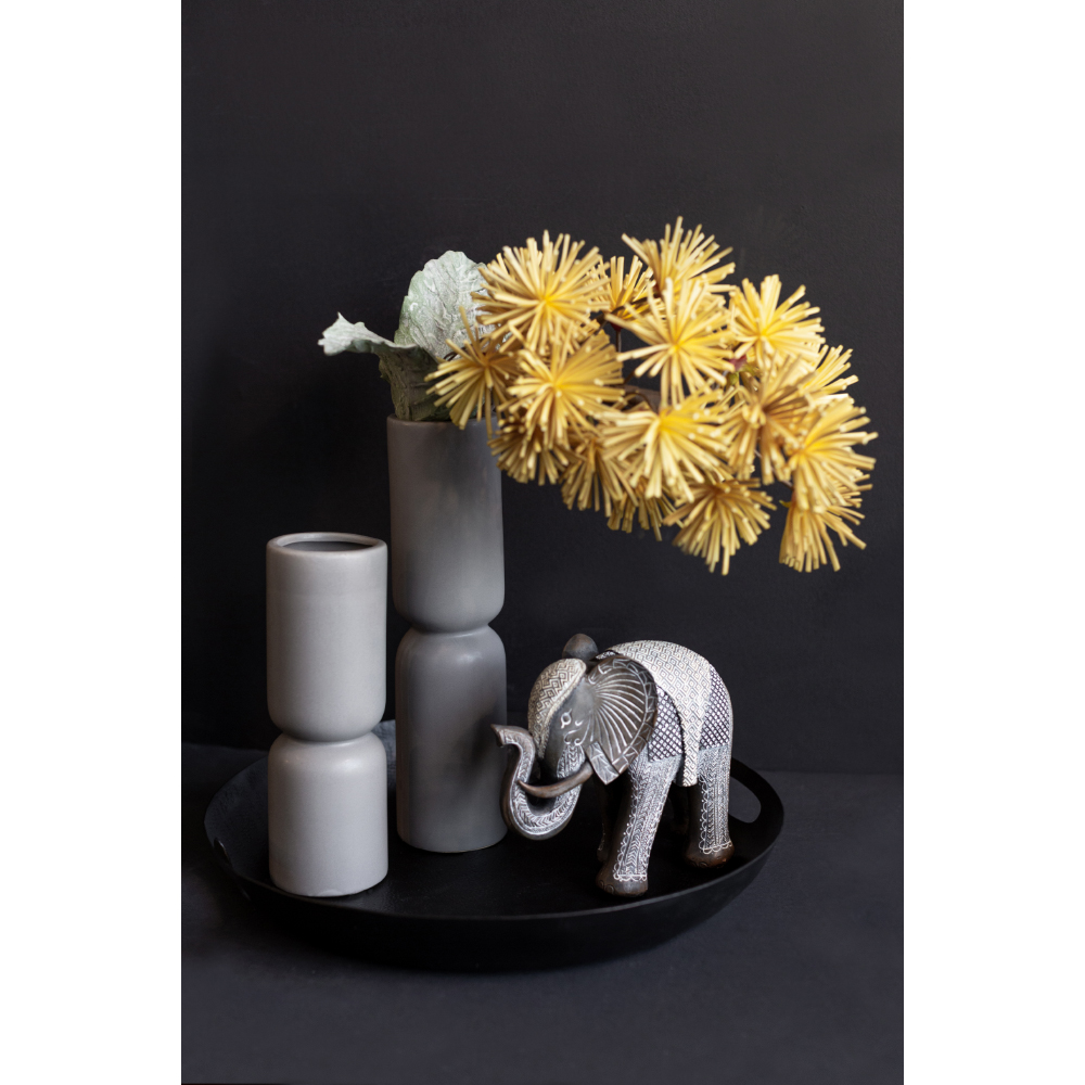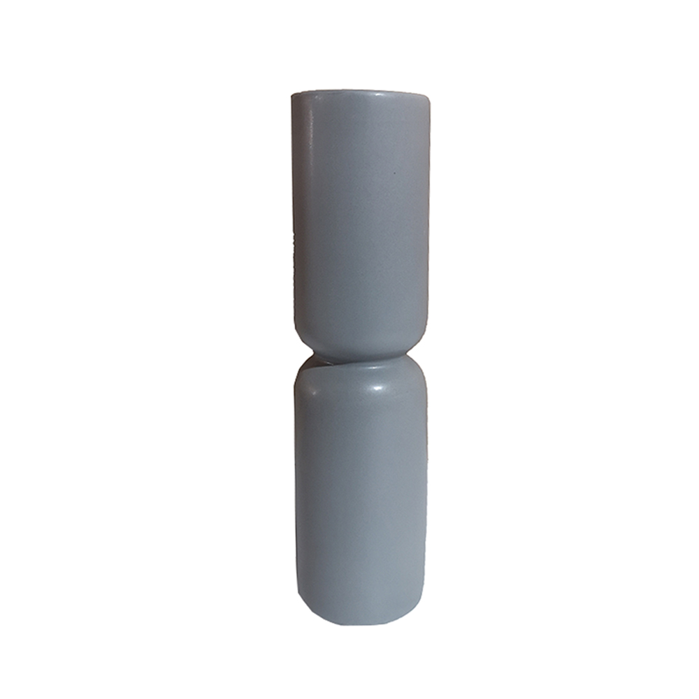 Το κεραμικό βάζο TERRA με διαστάσεις 9x9x33 cm εντυπωσιάζει με τη λιτή αλλά μοντέρνα σχεδίασή του. Η κυλινδρική μορφή του, με μια διακριτική καμπυλότητα στη μέση, δημιουργεί ένα μοναδικό αισθητικό αποτέλεσμα, ιδανικό για χώρους με minimal ή industrial ύφος. Το απαλό γκρι χρώμα προσδίδει ουδετερότητα και ευελιξία στη διακόσμηση, ταιριάζοντας εύκολα με άλλες υφές και αποχρώσεις. Αποκλειστικά για διακοσμητική χρήση — δεν προτείνεται η χρήση νερού.