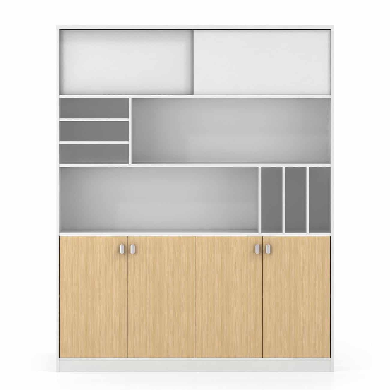 THESIS Βιβλιοθήκη Γραφείου, 2 Ράφια, 2 Ντουλάπια Δίφυλλα & 1 επάλληλο, Απόχρ.Beech -Άσπρο  (Ε-00024394)