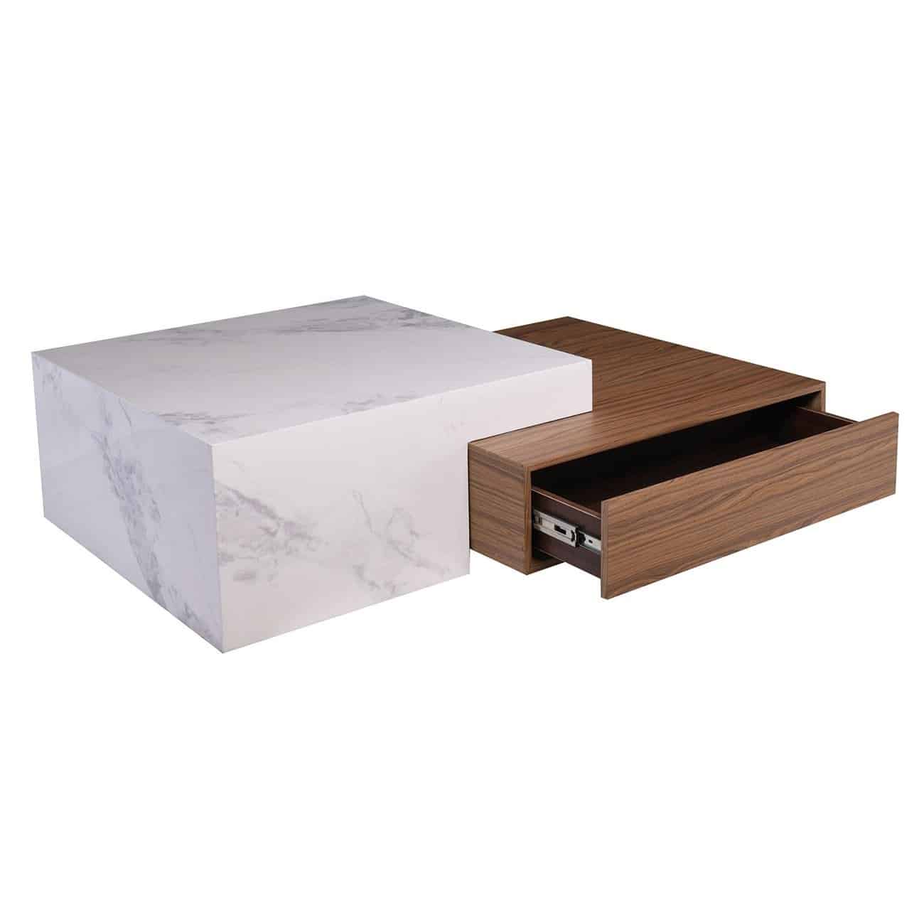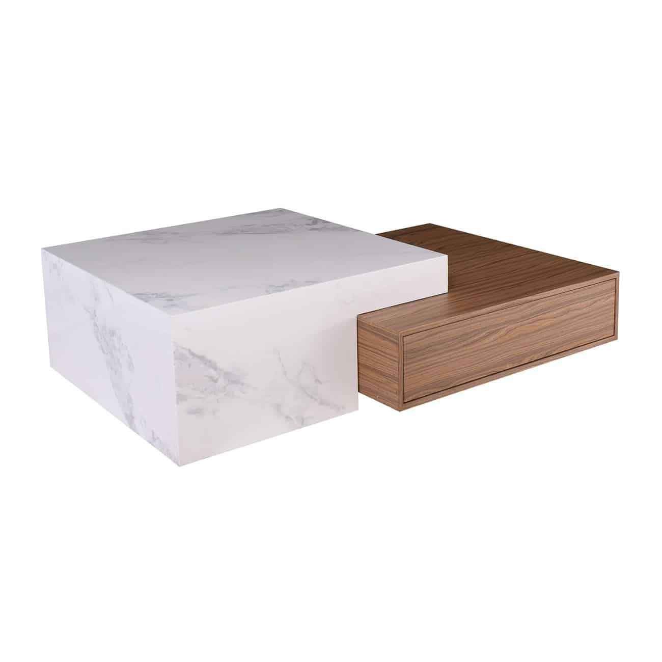 TIM Τραπεζάκι Σαλονιού – Καθιστικού Διπλό, Ξύλο Απόχρωση Άσπρο-Καρυδί 80x80x25cm / 80x80x35cm