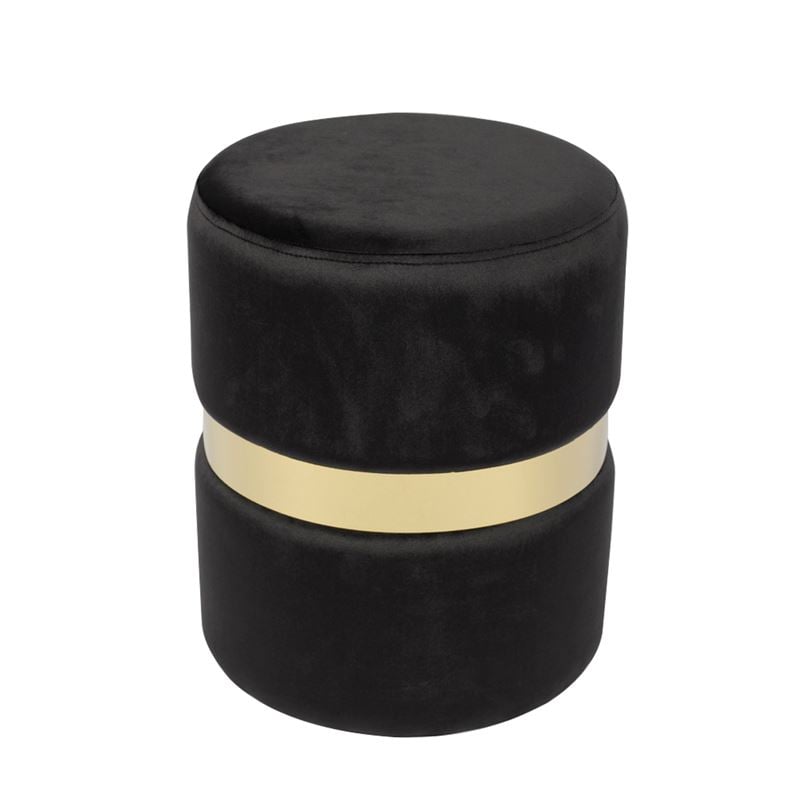 TOMMY Σκαμπό Βοηθητικό, Χρώμιο Χρυσό, Ύφασμα Velure Απόχρωση Μαύρο Φ35cm Η.43cm