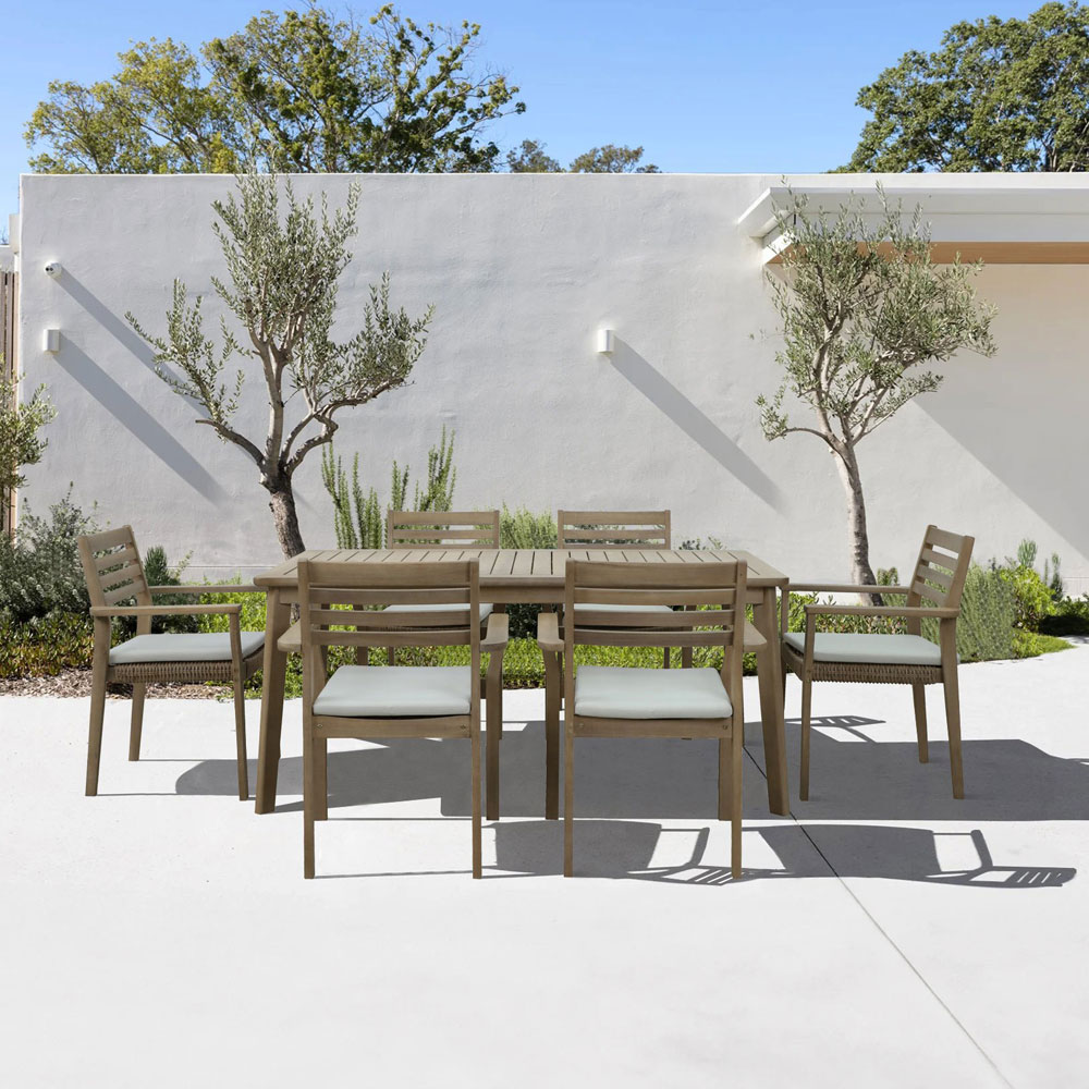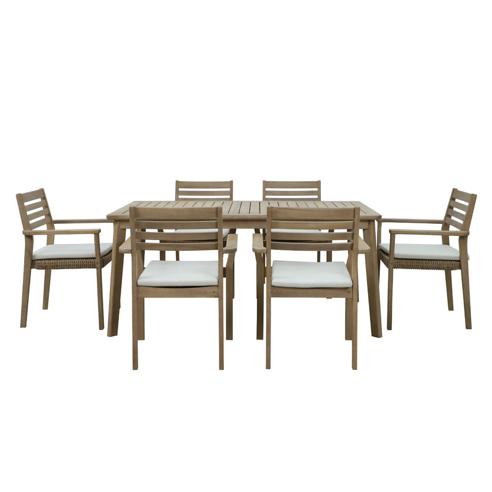 Το σετ τραπεζαρίας Toujour είναι η απόλυτη έκφραση κομψότητας και φυσικής αισθητικής, ιδανικό για κάθε χώρο εσωτερικού ή εξωτερικού περιβάλλοντος. Κατασκευασμένο από ανθεκτικό ξύλο ακακίας, προσφέρει υψηλή ποιότητα και διαχρονική γοητεία. Το σετ περιλαμβάνει ένα ευρύχωρο τραπέζι και έξι πολυθρόνες με προσεγμένο σχεδιασμό, που συνδυάζουν την άνεση με την αισθητική. Τα μαξιλάρια από λινό ύφασμα σε μπεζ απόχρωση προσδίδουν επιπλέον πολυτέλεια και αναβαθμίζουν την εμπειρία του γεύματος. Με φυσικές αποχρώσεις και μίνιμαλ γραμμές, το Toujour αποτελεί μια κομψή και διαχρονική επιλογή για κάθε χώρο φιλοξενίας.