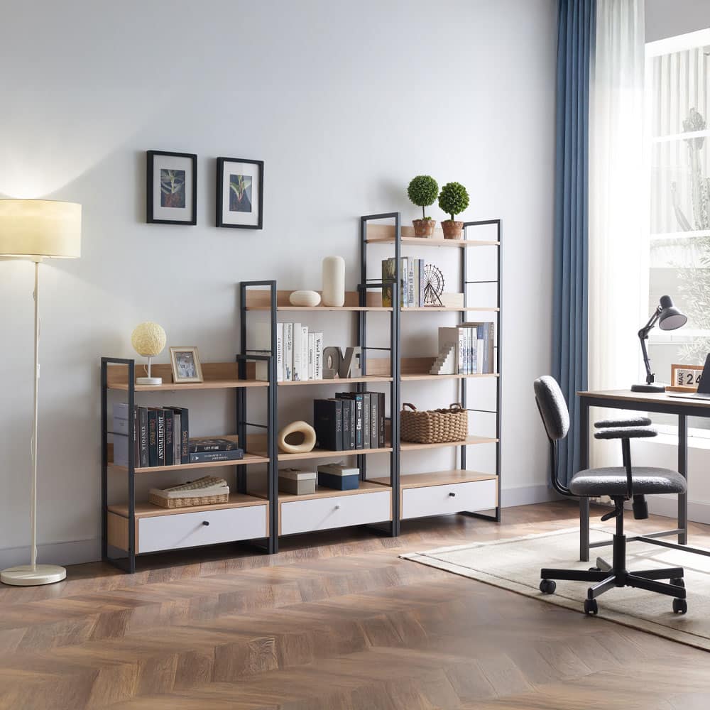 Η βιβλιοθήκη Trilogy συνδυάζει τη σύγχρονη αισθητική με τη λειτουργικότητα, δημιουργώντας έναν κομψό αποθηκευτικό χώρο για το σπίτι ή το γραφείο. Κατασκευασμένη από μελαμίνη και ανθεκτικό μεταλλικό σκελετό ηλεκτροστατικής βαφής, προσφέρει σταθερότητα και μακροχρόνια αντοχή. Τα ανοιχτά ράφια προσφέρουν άπλετο χώρο για την τοποθέτηση βιβλίων, διακοσμητικών ή άλλων αντικειμένων, ενώ το κάτω συρτάρι παρέχει επιπλέον αποθηκευτικό χώρο για αντικείμενα που θέλετε να διατηρήσετε κρυμμένα. Με τον industrial σχεδιασμό της και την ευέλικτη αισθητική, η Trilogy ταιριάζει απόλυτα σε σύγχρονους και μίνιμαλ χώρους προσδίδοντας μία μοντέρνα και πρακτική πινελιά.
