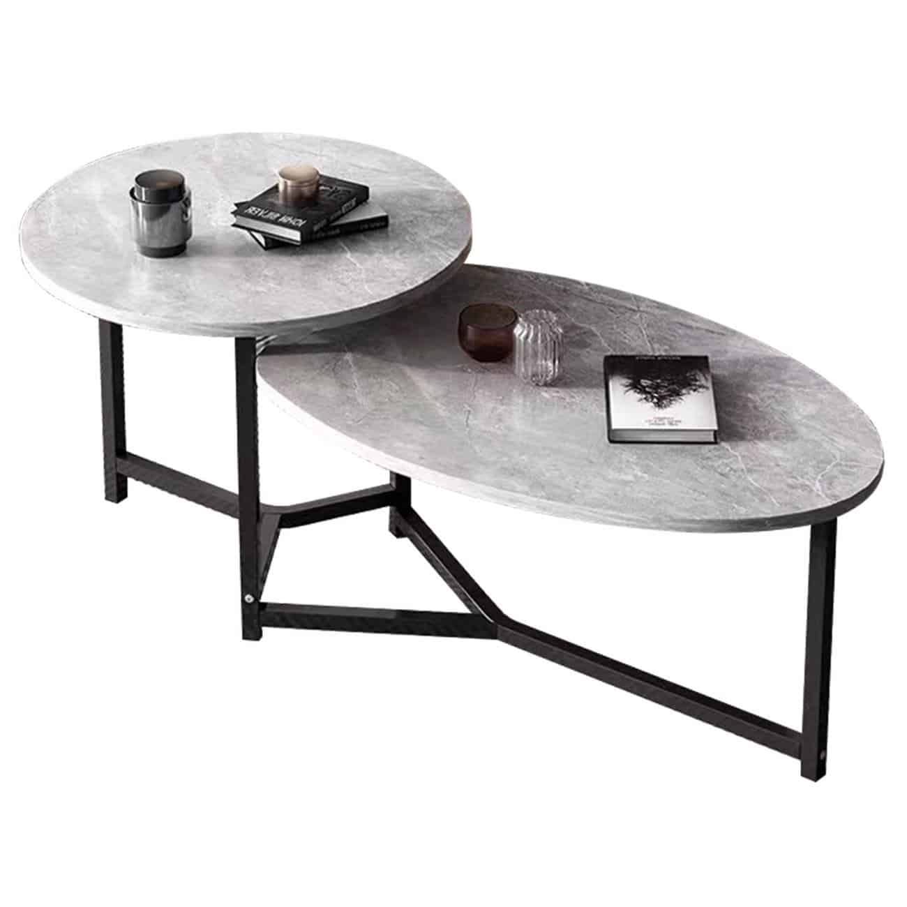 TRONIC Τραπεζάκι Σαλονιού- Καθιστικού Διπλό, Μέταλλο Μαύρο, Επιφάνεια Απόχρωση Γκρι (Ε-00025162)