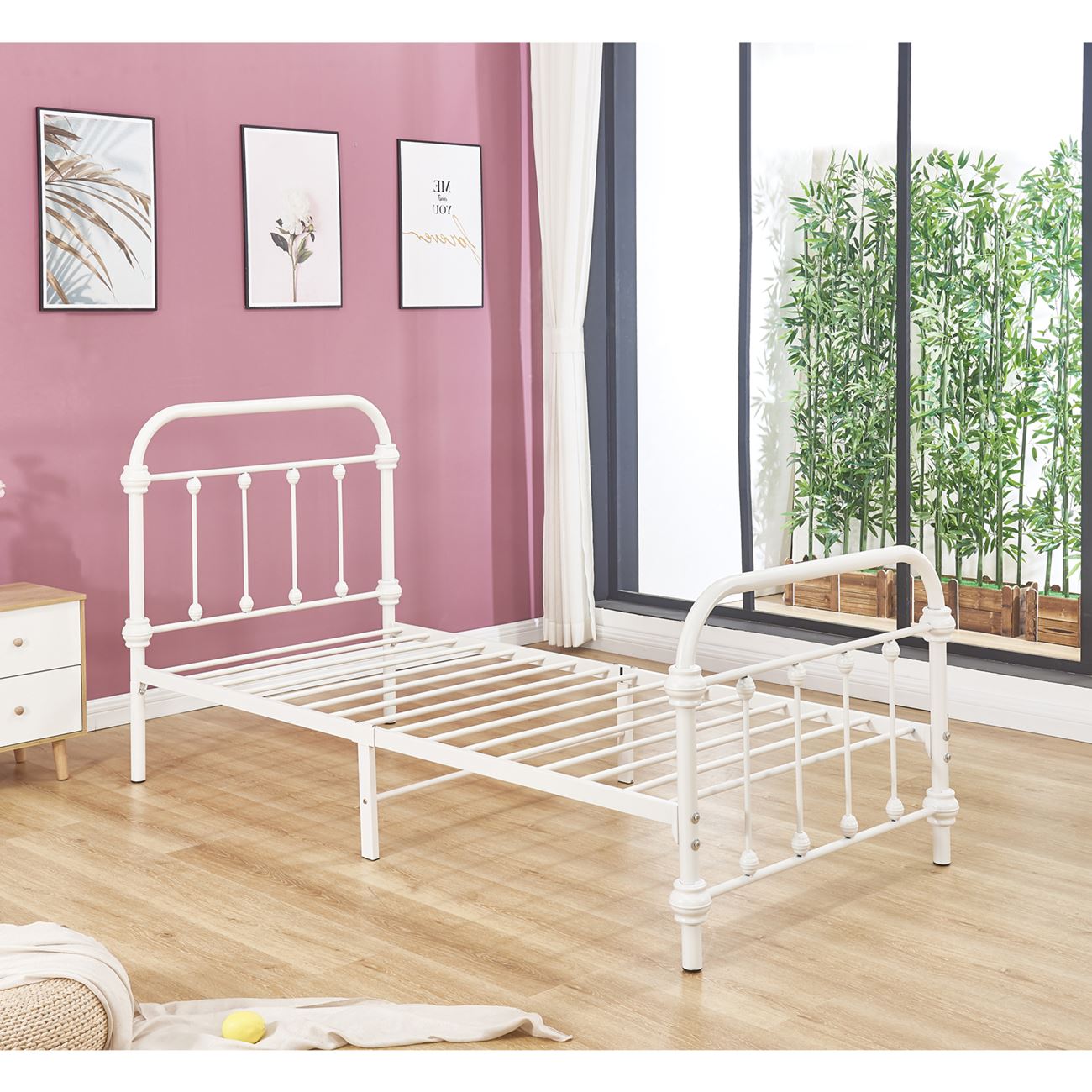 TUNER Κρεβάτι Μονό για Στρώμα 90x190cm, Μέταλλο Βαφή Άσπρο 203x98x102cm