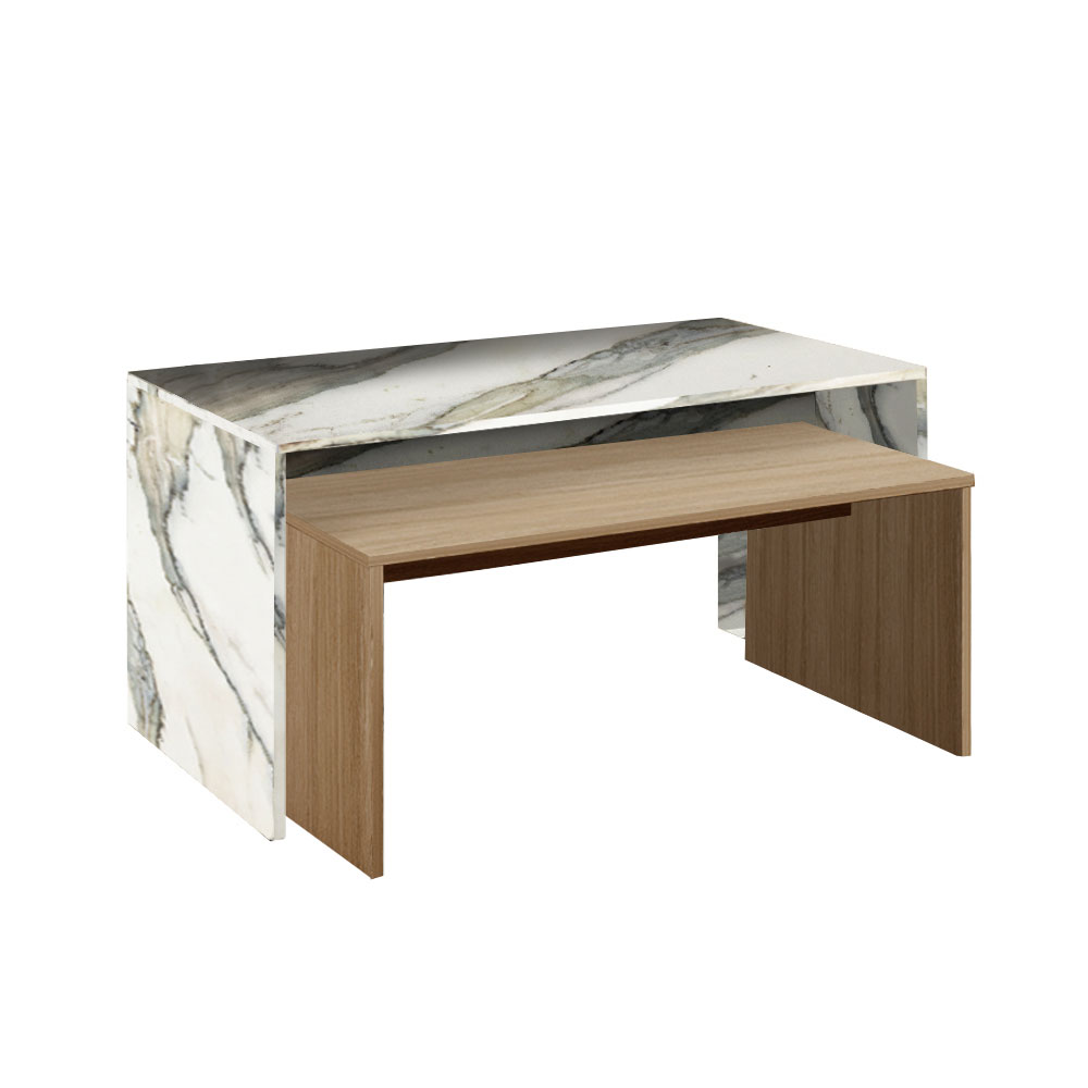 TUNUSIA COFFEE TABLE ARTISAN OAK ΛΕΥΚΟ ΜΕ ΟΨΗ ΜΑΡΜΑΡΟΥ 90x45x45