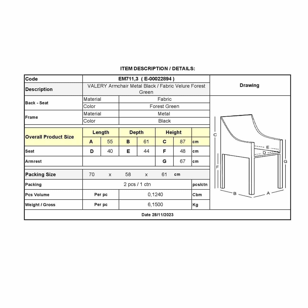 ΕΜ711,3 VALERY Πολυθρόνα Μεταλ.Μαύρο/Ύφασμα Velure Forest Green