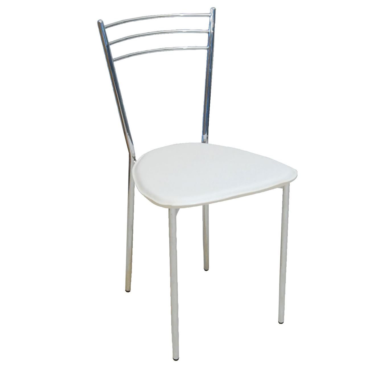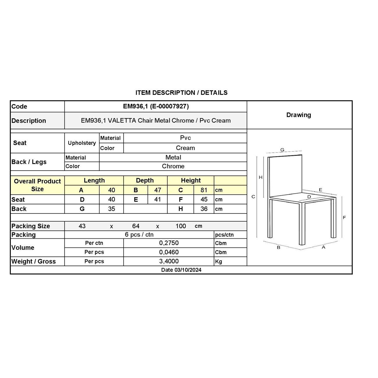 VALETTA Καρέκλα Τραπεζαρίας Κουζίνας Μέταλλο Χρώμιο, PVC Εκρού 40x47x81cm