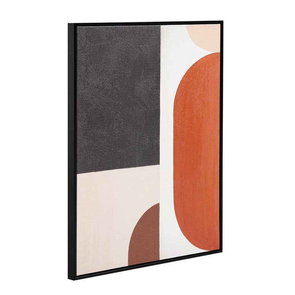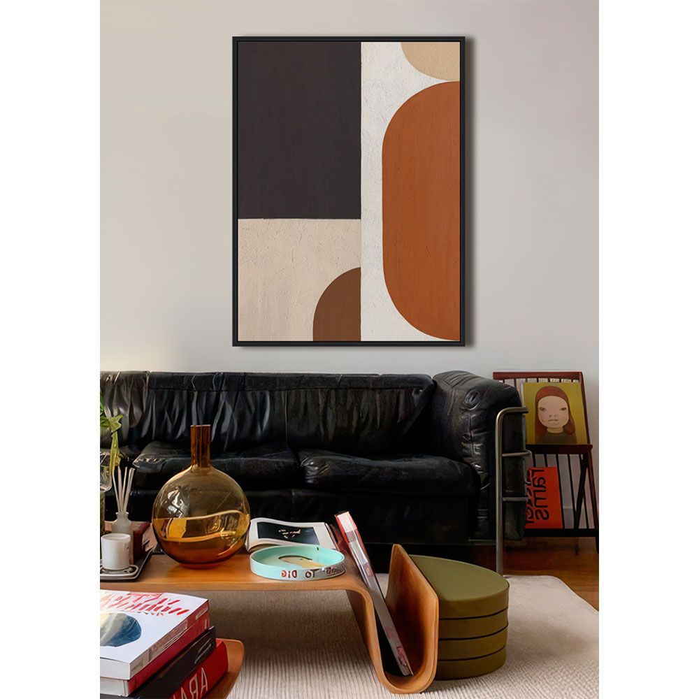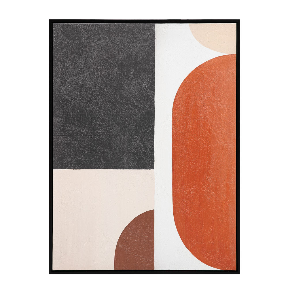 Ο πίνακας VARME A είναι τυπωμένος σε καμβά και πλαισιωμένος με μαύρη ξύλινη κορνίζα, τονίζοντας τις γεωμετρικές φόρμες και τις θερμές πολυχρωμίες του. Οι καμπύλες γραμμές και οι γήινες αποχρώσεις δημιουργούν μια αίσθηση αρμονίας και ζεστασιάς. Με διαστάσεις 60x80x4 cm, αποτελεί ιδανική λύση για μικρότερους τοίχους ή για συνδυασμό με άλλους πίνακες. Ταιριάζει σε σαλόνι, τραπεζαρία, γραφεία δημιουργικών επαγγελμάτων και boutique επαγγελματικούς χώρους.
