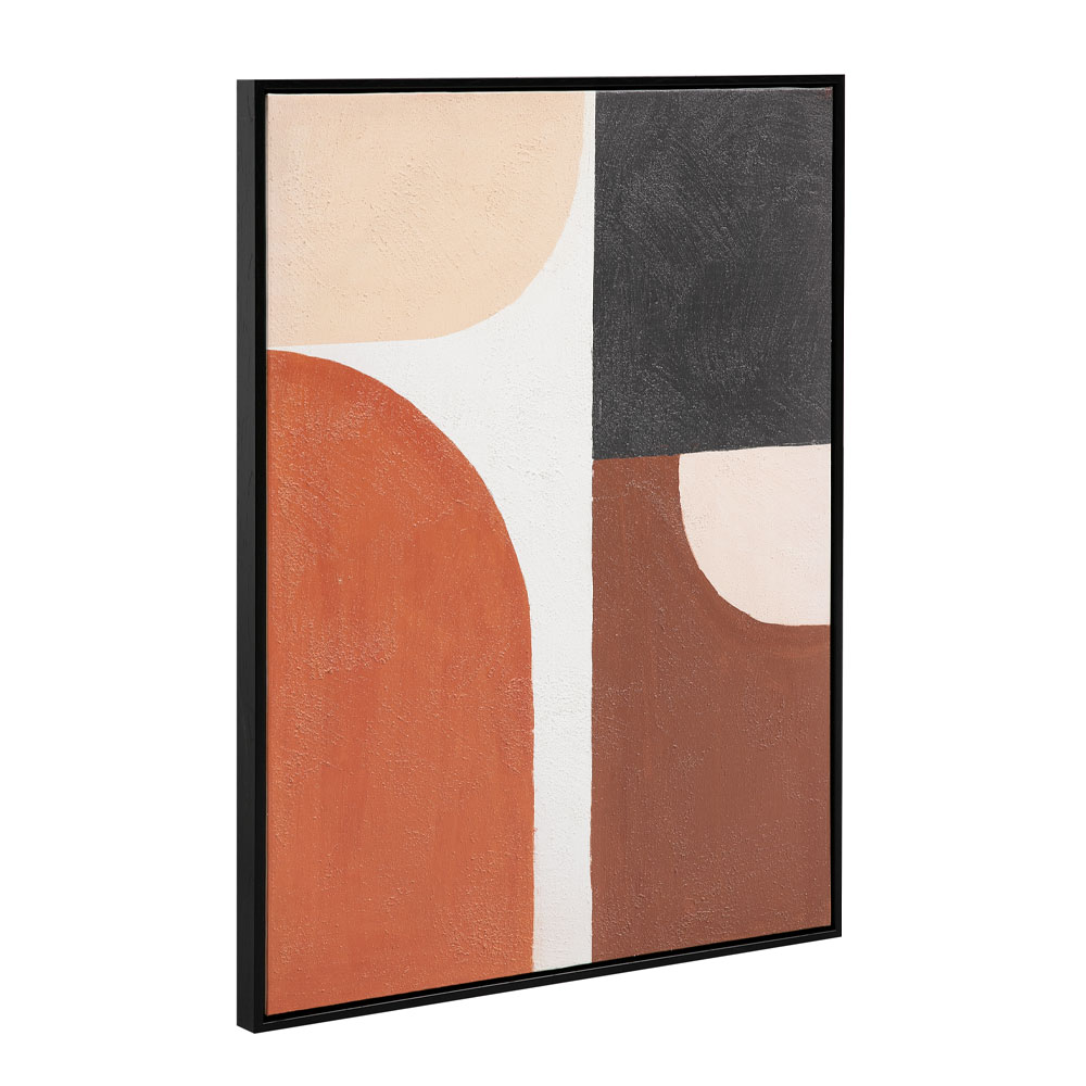 Ο πίνακας VARME B, σε καμβά με μαύρη ξύλινη κορνίζα, εντυπωσιάζει με τις ζεστές πολυχρωμίες του και τις αφηρημένες γεωμετρικές αντιθέσεις. Η σύνθεση δημιουργεί μια αίσθηση κίνησης, ιδανική για να δώσει χαρακτήρα σε έναν χώρο χωρίς να τον βαραίνει. Με διαστάσεις 60x80x4 cm, προσαρμόζεται εύκολα σε κάθε τύπο διακόσμησης. Ταιριάζει σε καθιστικό, υπνοδωμάτιο, αλλά και σε επαγγελματικούς χώρους όπως γραφεία ή lounge περιοχές.
