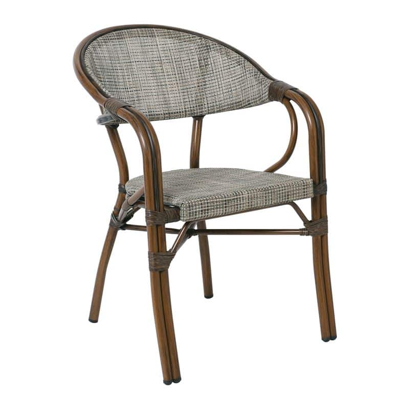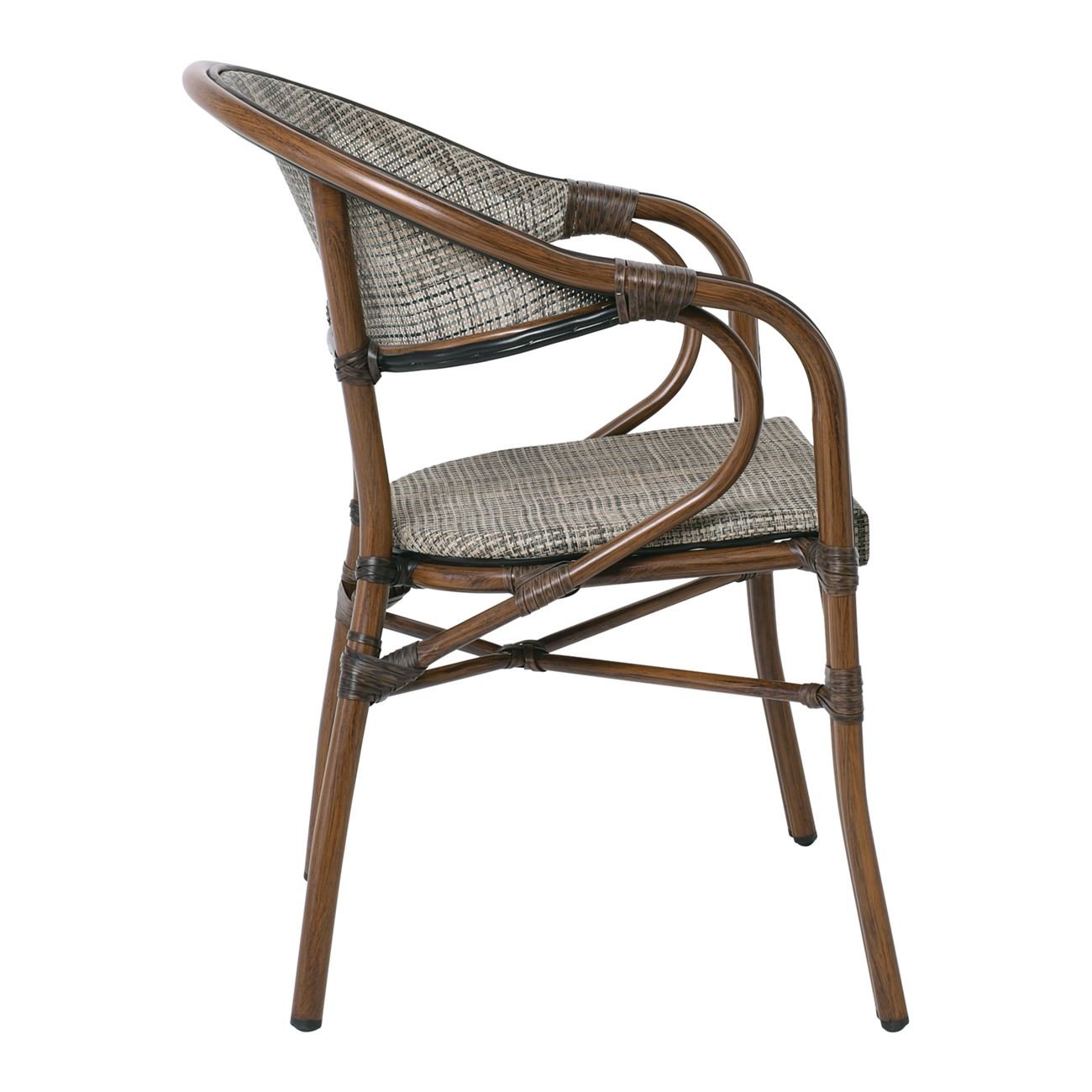 VEGERA Πολυθρόνα Dining Αλουμίνιο Βαφή Καρυδί Textilene Μπεζ, Στοιβαζόμενη (Ε-00020522)
