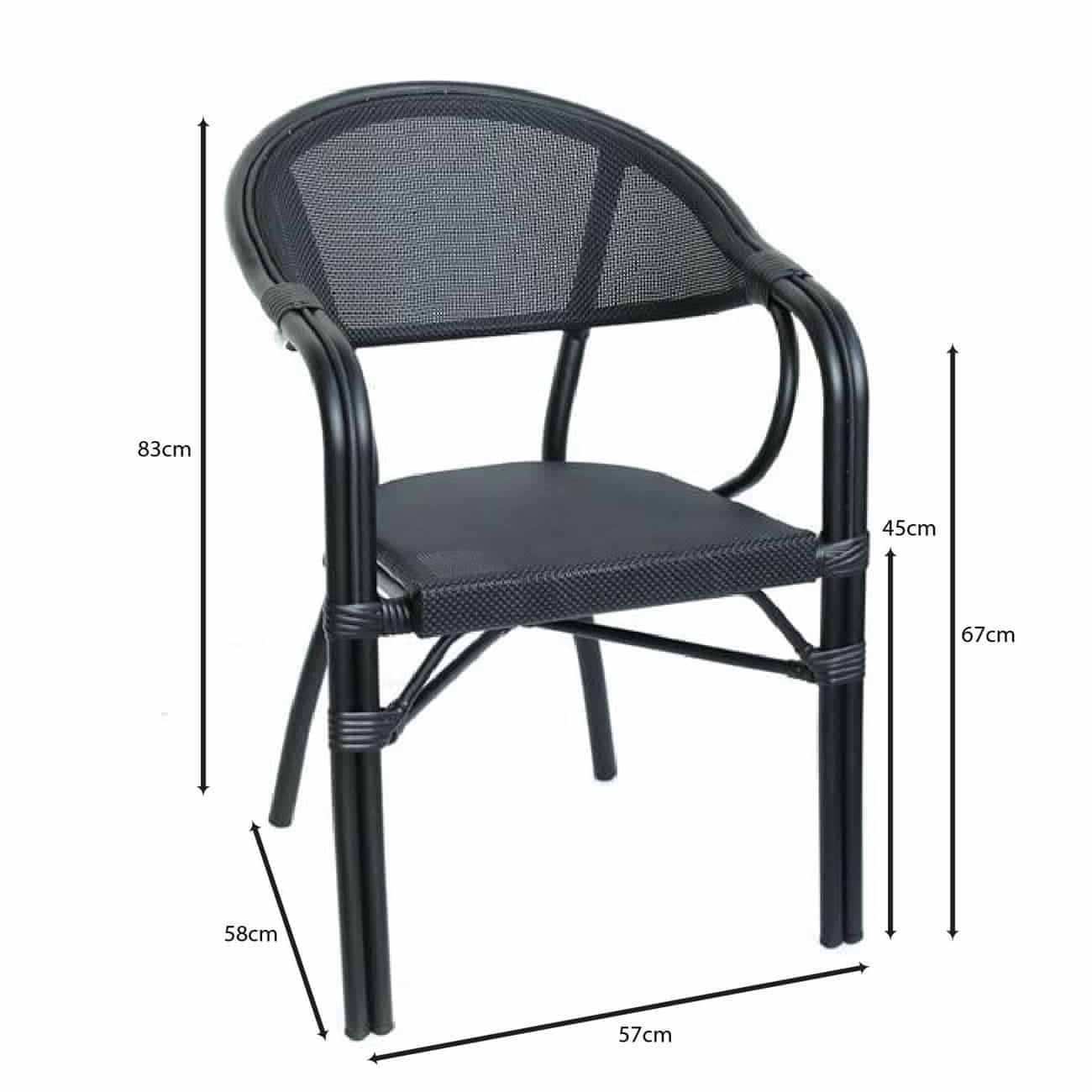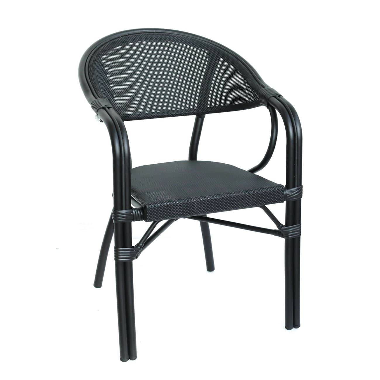VEGERA Πολυθρόνα Dining Αλουμίνιο Βαφή Μαύρο Textilene Μαύρο, Στοιβαζόμενη 57x58x83cm
