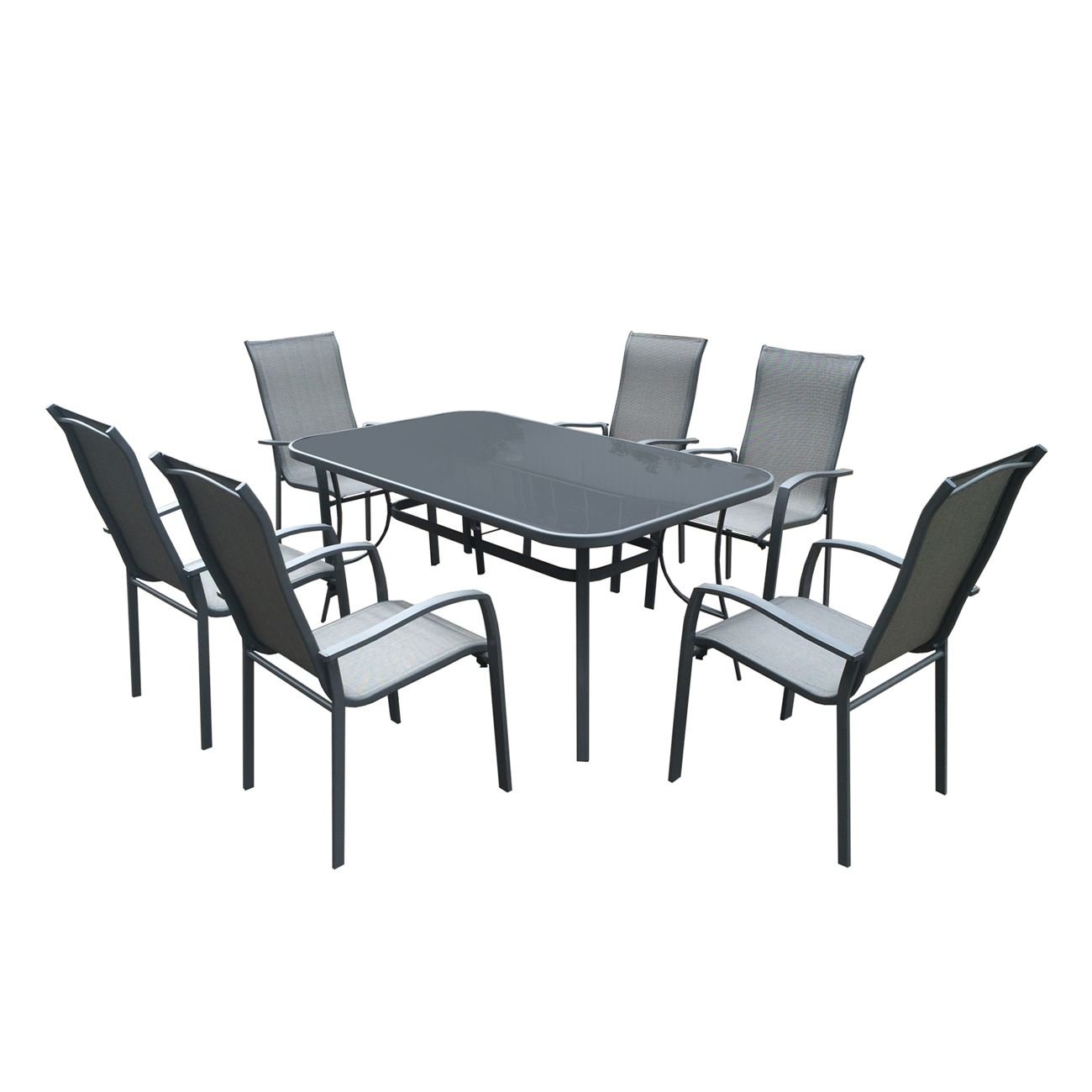 VERONA Set Τραπεζαρία Κήπου: Μέταλλο – Textilene Ανθρακί, :Τραπέζι 160×96 + 6 Πολυθρόνες Table160x96x71Armchair56x70x96