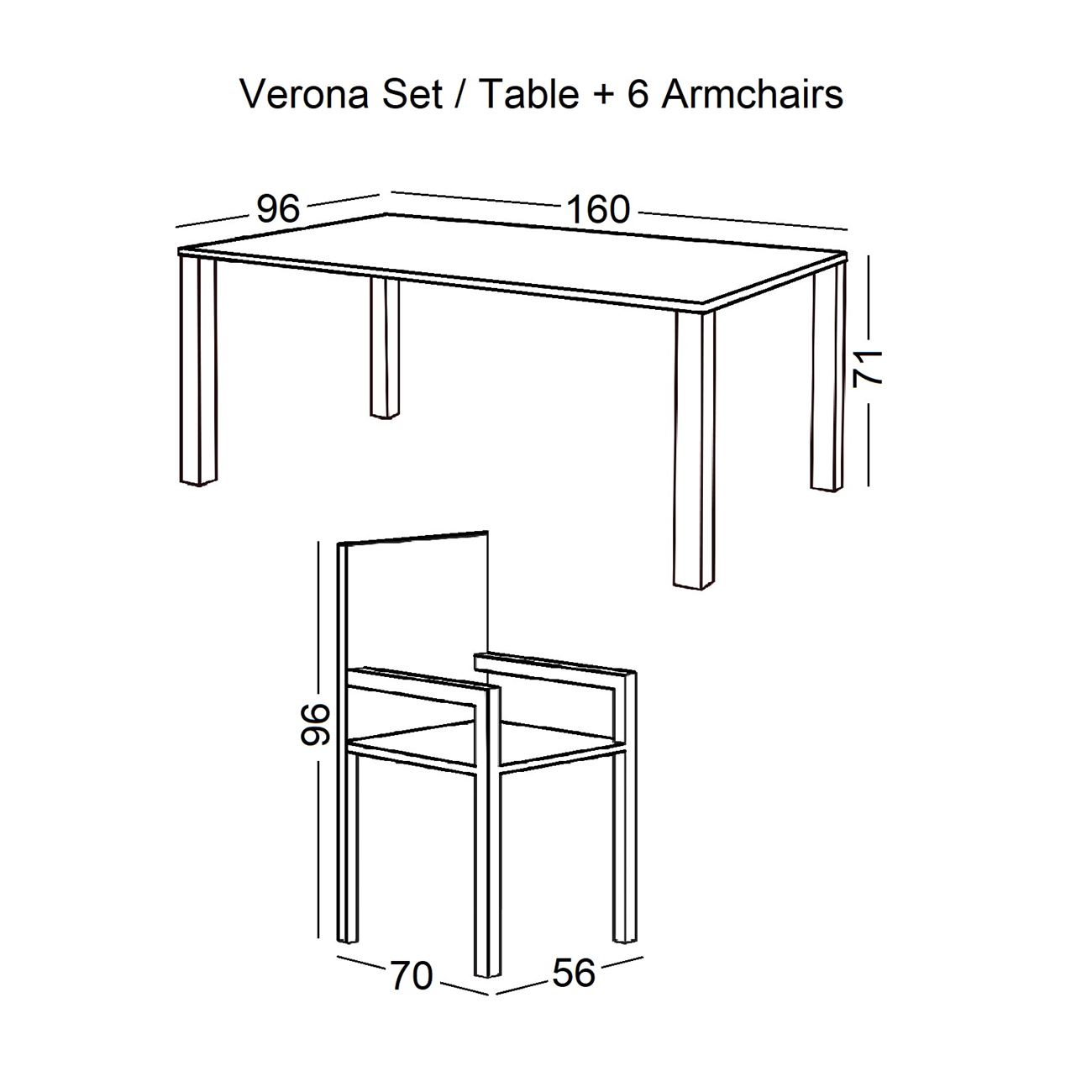 VERONA Set Τραπεζαρία Κήπου: Μέταλλο – Textilene Ανθρακί, :Τραπέζι 160×96 + 6 Πολυθρόνες (Ε-00016309)