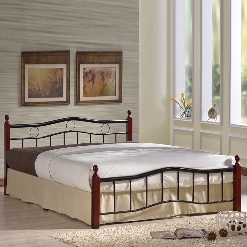 Ε8036 – VICTOR Κρεβάτι (για στρώμα 150x200cm) Mεταλ.Μαύρο/Ξύλο Καρυδί