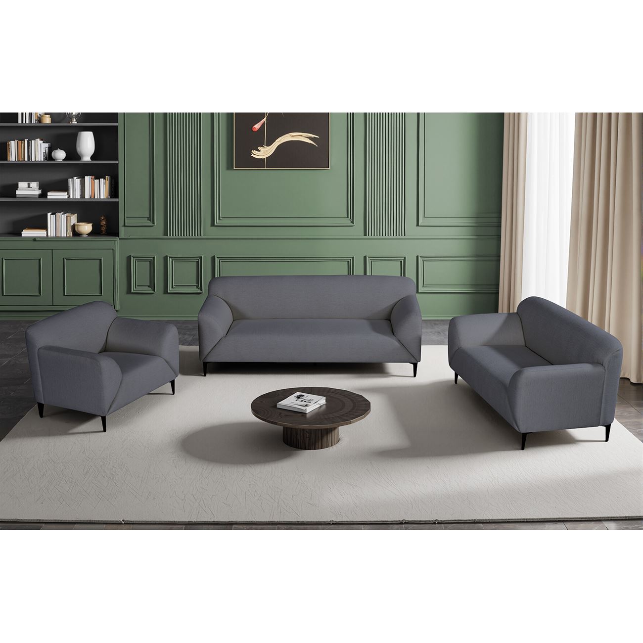 VICTORIA Set Σαλόνι-Καθιστικό Πολυθρόνα-2Θέσιος-3Θέσιος, Ύφασμα Σκούρο Γκρι (Ε-00026530)
