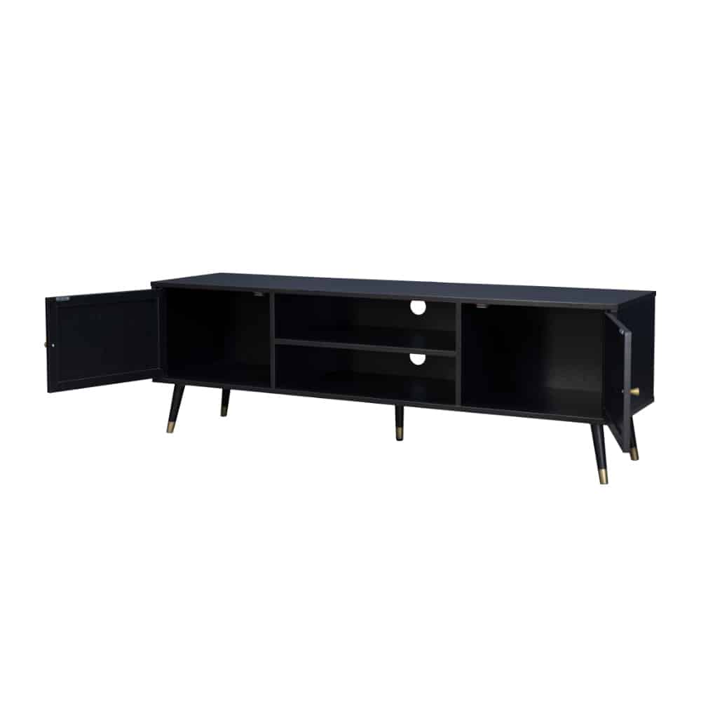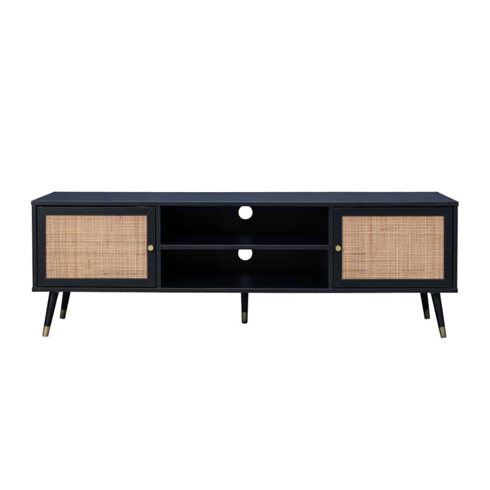 VIENNA TV STAND ΜΑΥΡΟ ΜΕ RATTAN 150x39x49