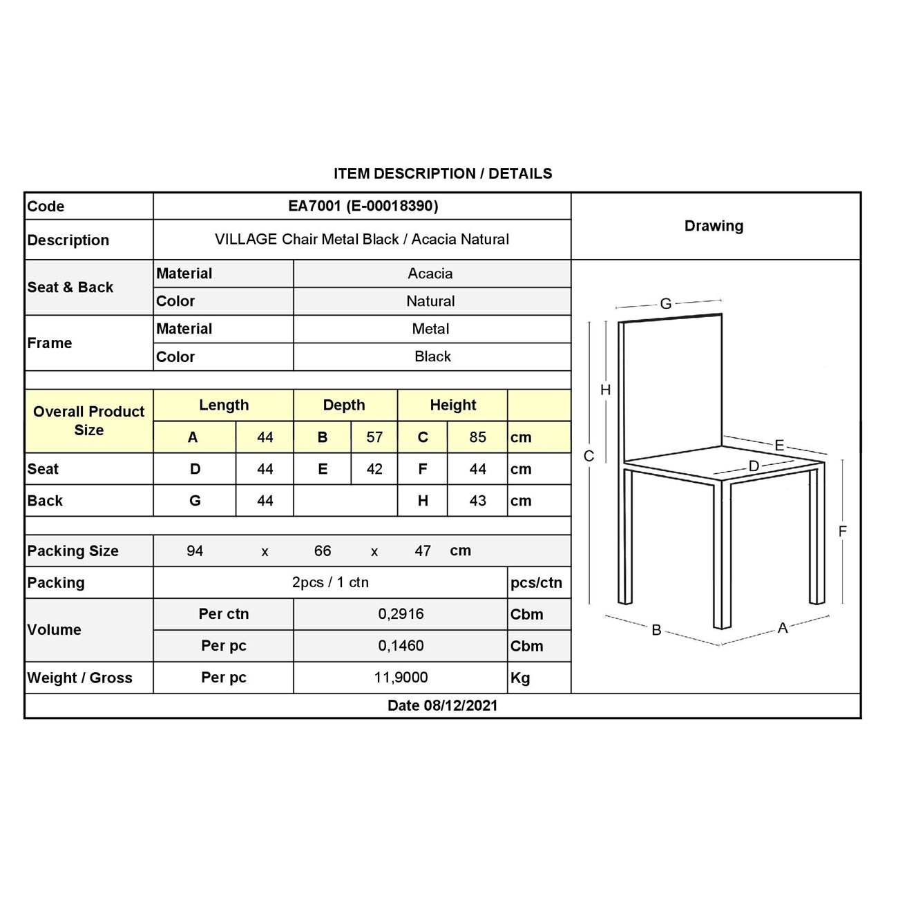 VILLAGE Καρέκλα Τραπεζαρίας, Μέταλλο Βαφή Μαύρο, Ξύλο Ακακία Απόχρωση Φυσικό (Ε-00018390)