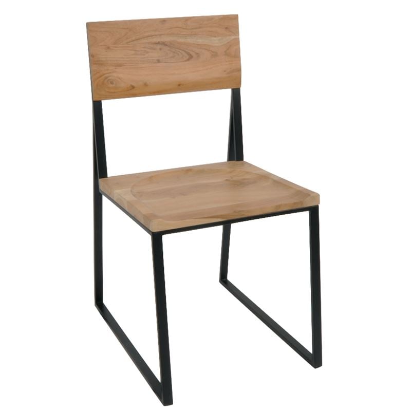 VILLAGE Καρέκλα Τραπεζαρίας, Μέταλλο Βαφή Μαύρο, Ξύλο Ακακία Απόχρωση Φυσικό 44x57x85cm