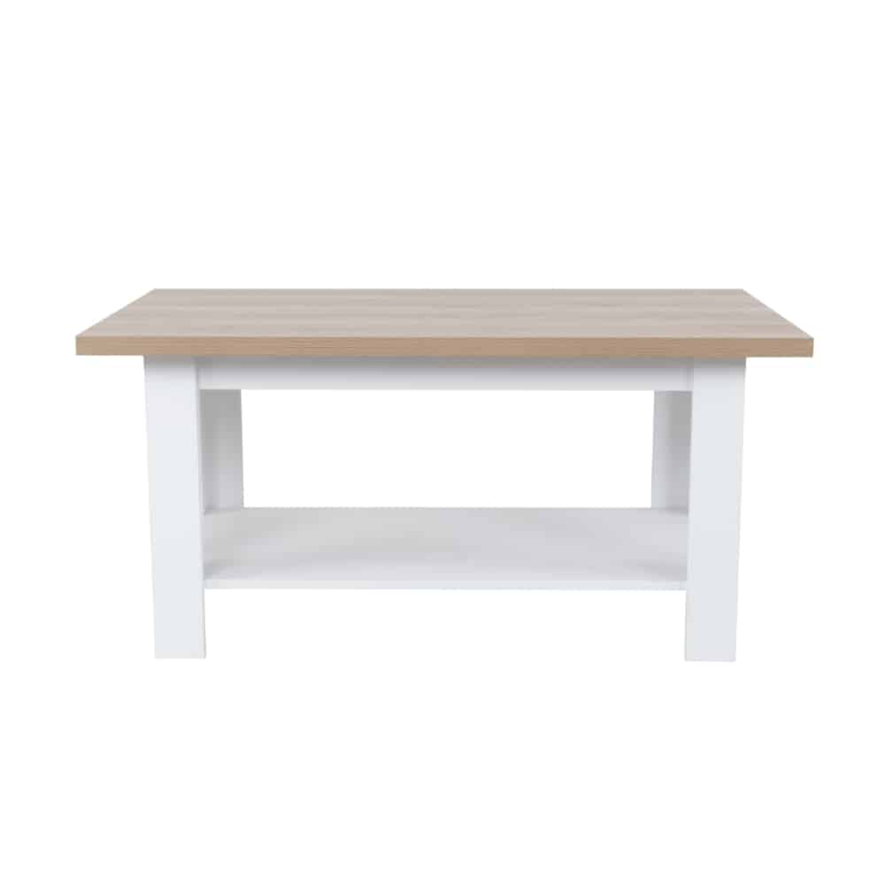 Το τραπεζάκι σαλονιού VILLAGE προσθέτει μια country αίσθηση στο σαλόνι σας. Κατασκευασμένο από MDF με επένδυση μελαμίνης Carta, διαθέτει επιφάνεια σε φυσικό χρώμα ξύλου και λευκή βάση, δημιουργώντας διχρωμία που φωτίζει τον χώρο. Το βοηθητικό του ράφι προσφέρει επιπλέον αποθήκευση για βιβλία ή διακοσμητικά. Ιδανική επιλογή για rustic, cottage ή σκανδιναβικού τύπου διακόσμηση.