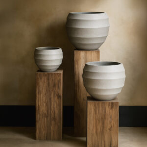 Καλλιτεχνική γλάστρα με γλυπτό πρόσωπο, εμπνευσμένη από μοντέρνες γραμμές και ασιατική αισθητική. Το βαθύ μαύρο χρώμα και η συμμετρική γεωμετρία της δημιουργούν ένα statement διακοσμητικό για κάθε χώρο.
