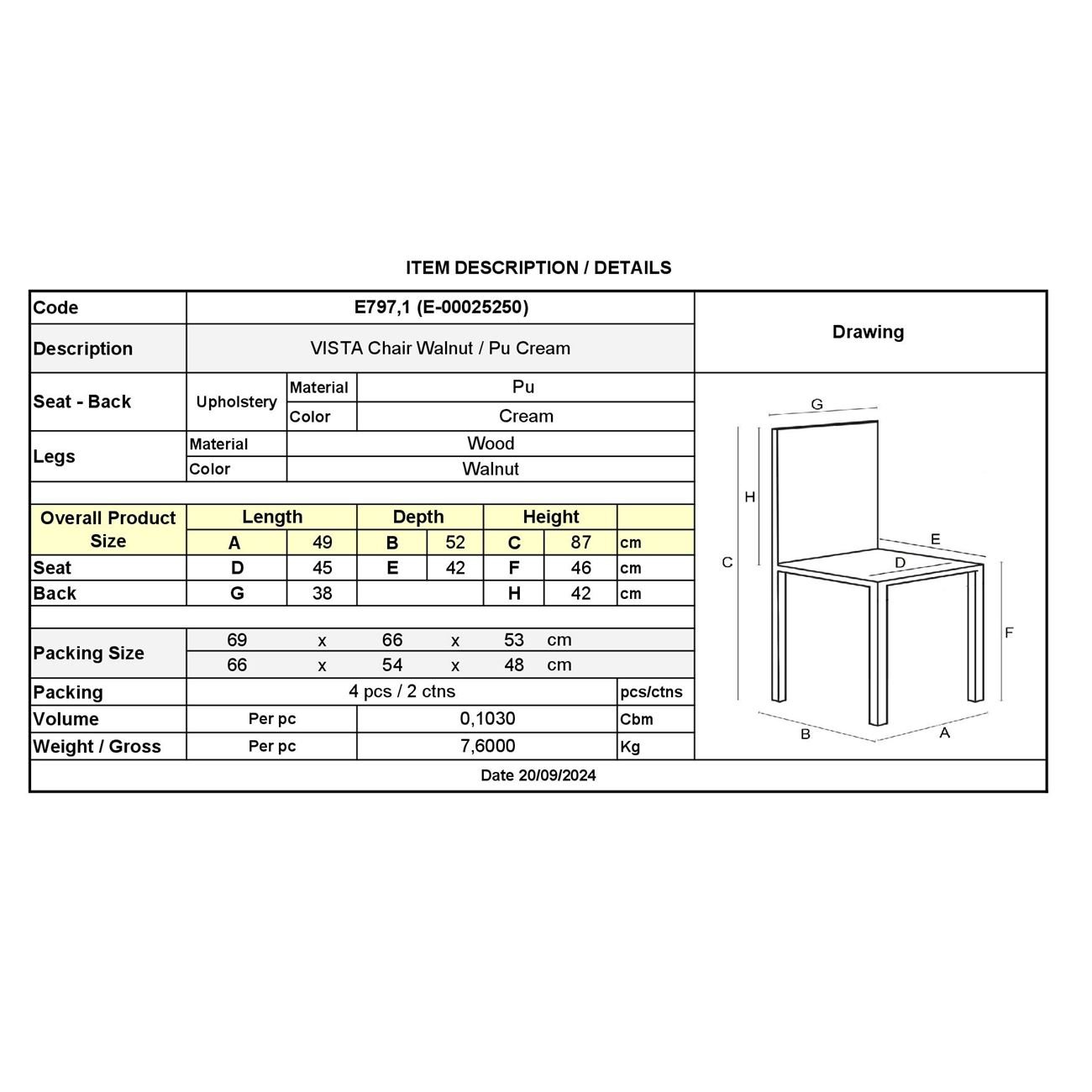 VISTA Καρέκλα Τραπεζαρίας- Κουζίνας, Απόχρωση Καρυδί, Pu Εκρού 49x52x87cm