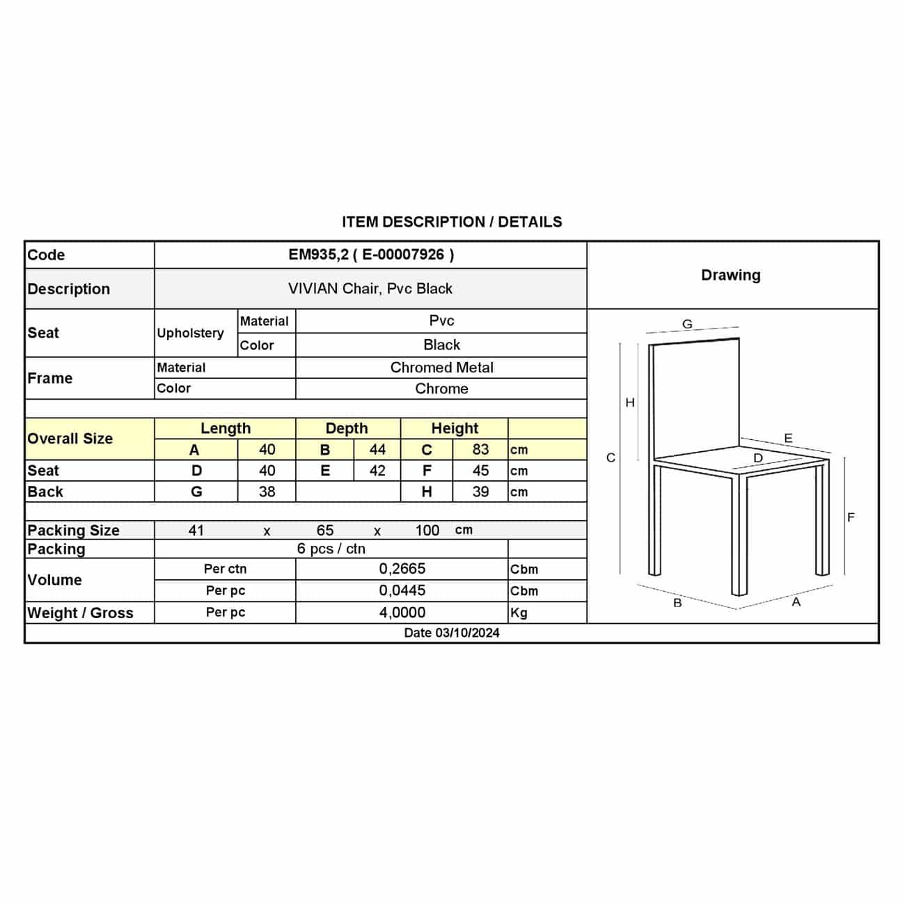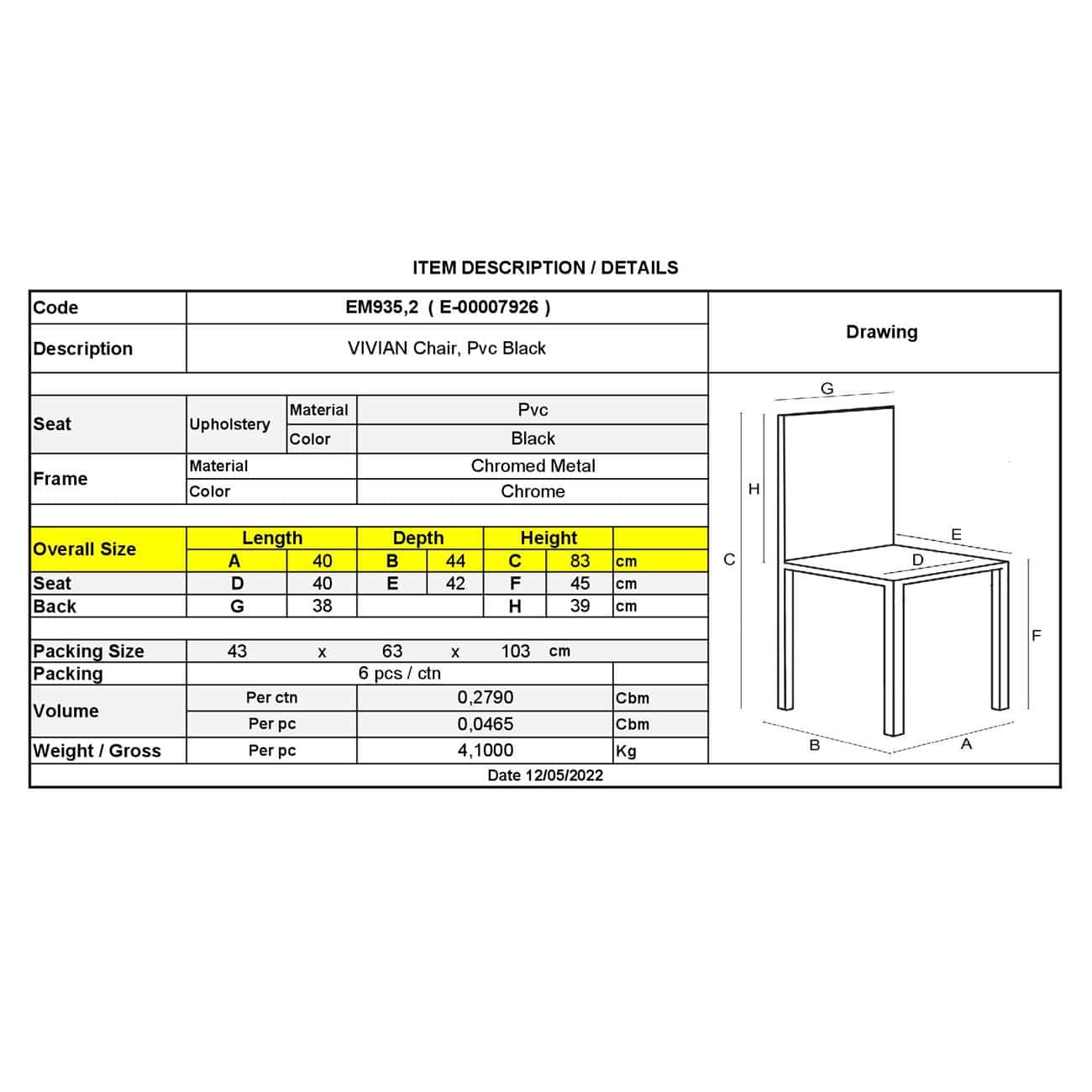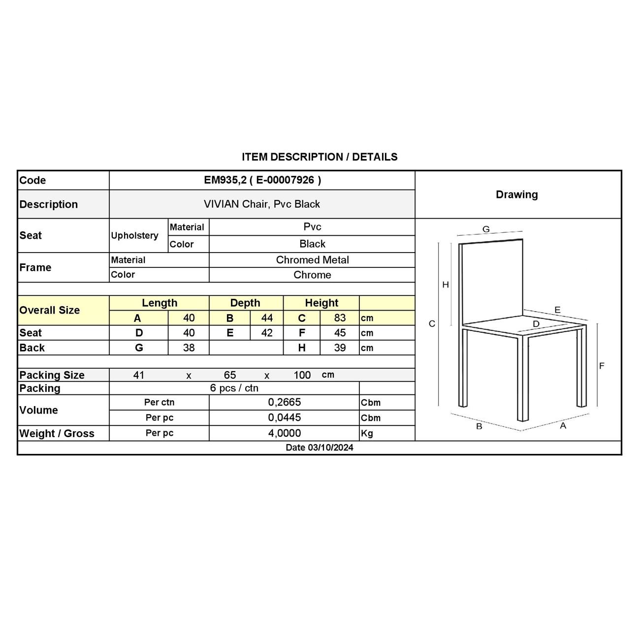 ΕΜ935,2 VIVIAN Καρέκλα Χρώμιο/Pvc Μαύρο