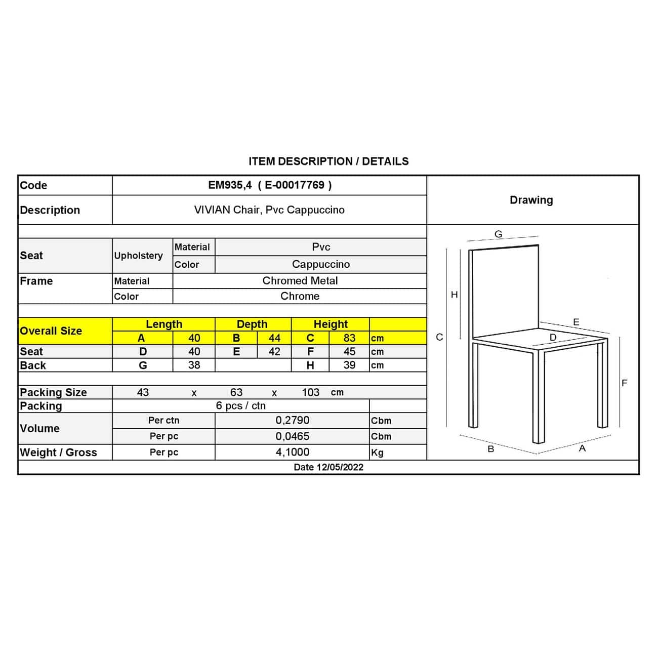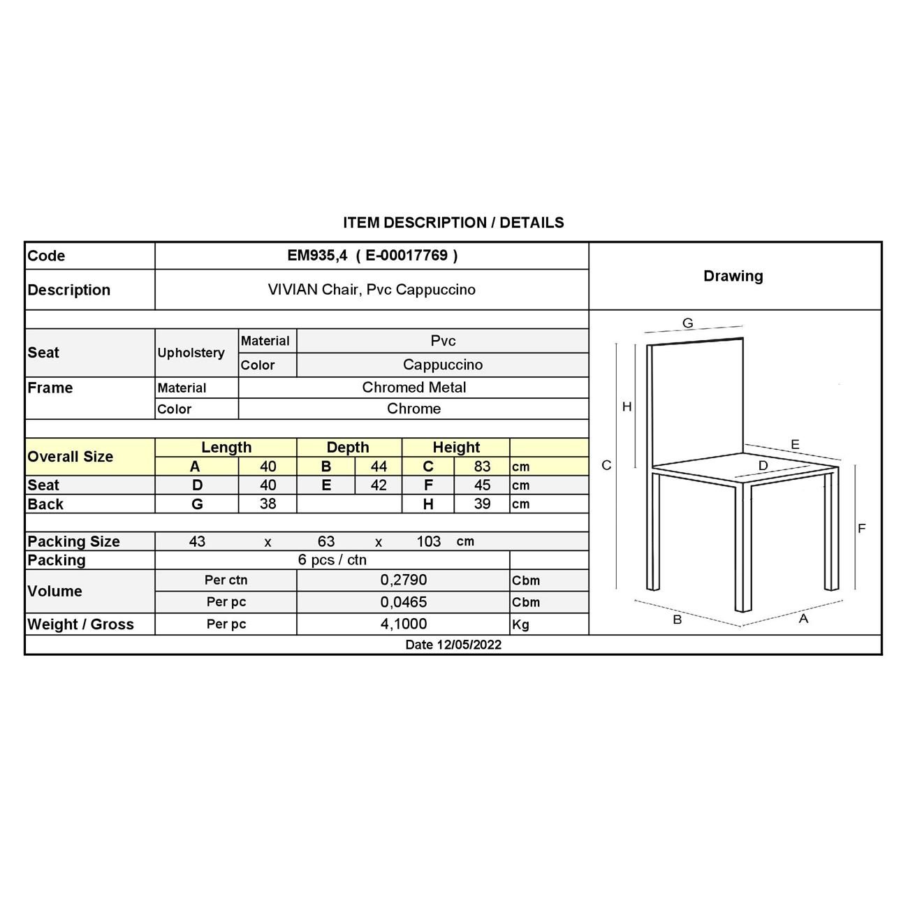 ΕΜ935,4 VIVIAN Καρέκλα Χρώμιο/Pvc Cappuccino