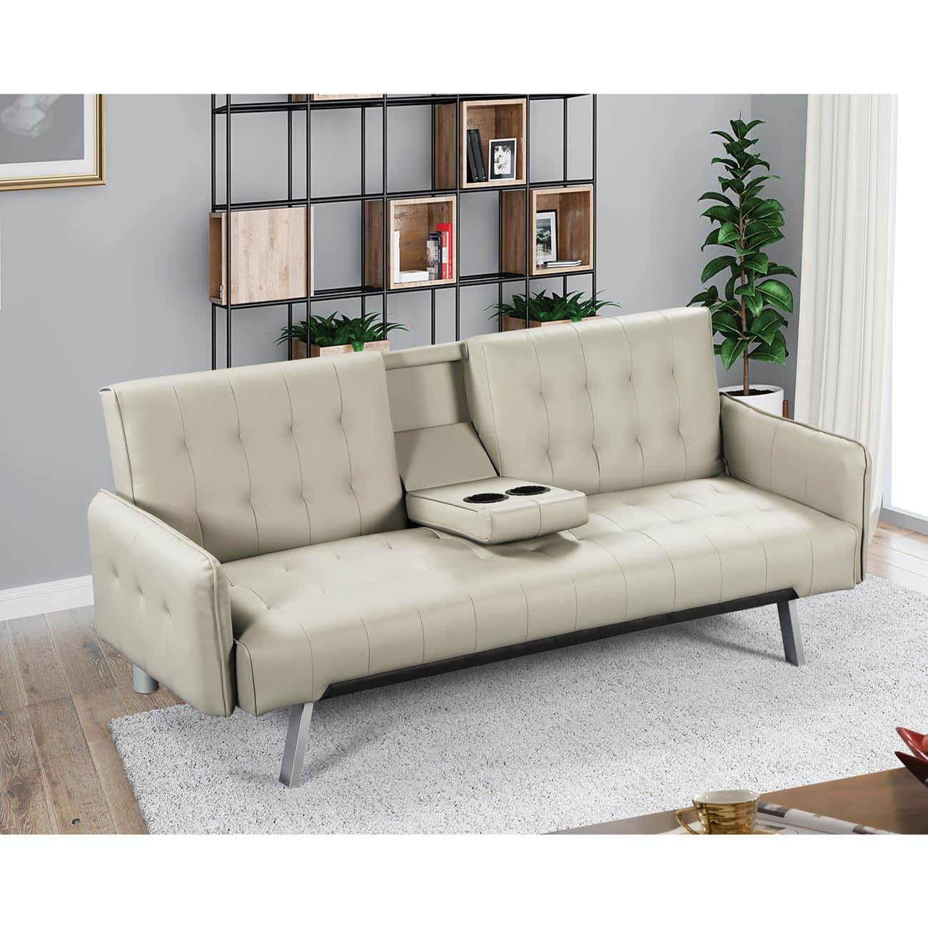 WELLS Καναπές – Κρεβάτι Σαλονιού – Καθιστικού, Pu Μπεζ (Ε-00022627)