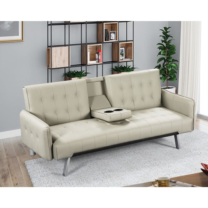 WELLS Καναπές – Κρεβάτι Σαλονιού – Καθιστικού, Pu Μπεζ 188x82x80cm Bed:168x100x36cm