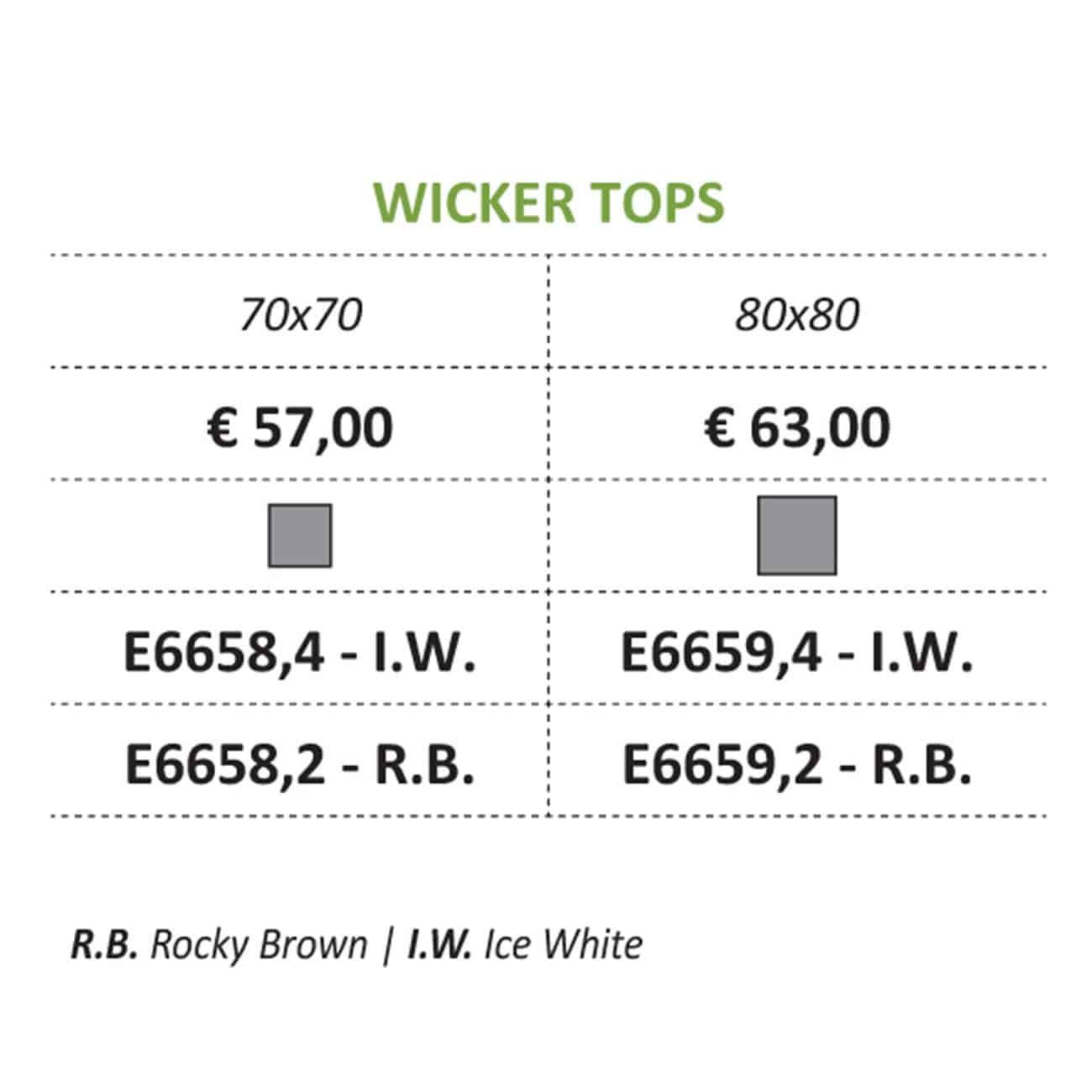 Ε6658,4 WICKER TOP 70x70cm ALU/Wicker Ice White, γυαλί 5mm