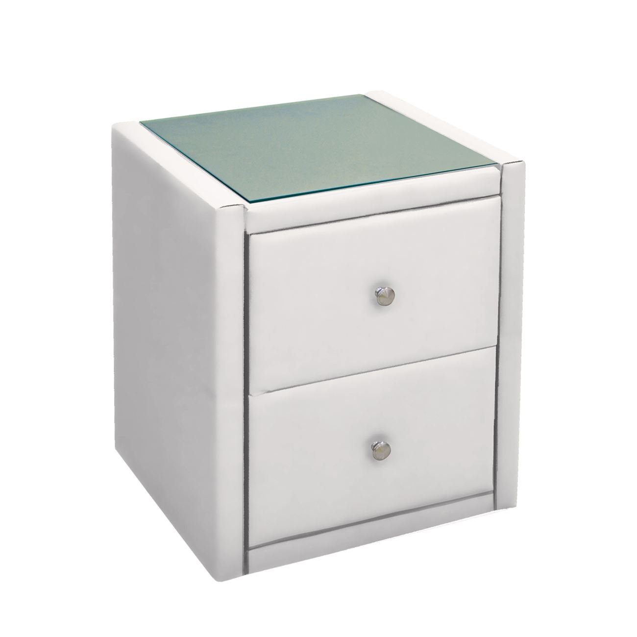 Ε8057,1G WILTON Κομοδίνο (με γυαλί) 46x41x57cm Pu Άσπρο