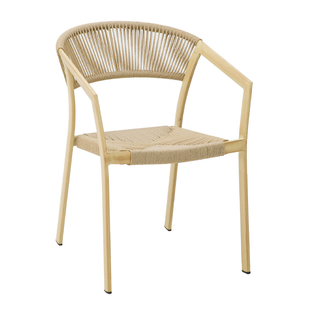 Η καρέκλα Wizard αποπνέει κομψότητα και φυσική αισθητική, κάνοντάς την ιδανική επιλογή για σύγχρονους εσωτερικούς και εξωτερικούς χώρους. Η επένδυση από PE Round Woven, ένα συνθετικό υλικό από πολυαιθυλένιο με κυκλική ύφανση, σε φυσική απόχρωση, προσφέρει αντοχή και μοναδικό στυλ. Ο σκελετός από αλουμίνιο στην ίδια φυσική απόχρωση, βαμμένος με ηλεκτροστατική μέθοδο, εξασφαλίζει υψηλή ανθεκτικότητα και κομψότητα. Η στοιβαζόμενη σχεδίαση καθιστά την καρέκλα Wizard ιδιαίτερα πρακτική, εξοικονομώντας χώρο όταν δεν χρησιμοποιείται. Ένας συνδυασμός διαχρονικής κομψότητας και λειτουργικότητας που θα αναβαθμίσει κάθε περιβάλλον.