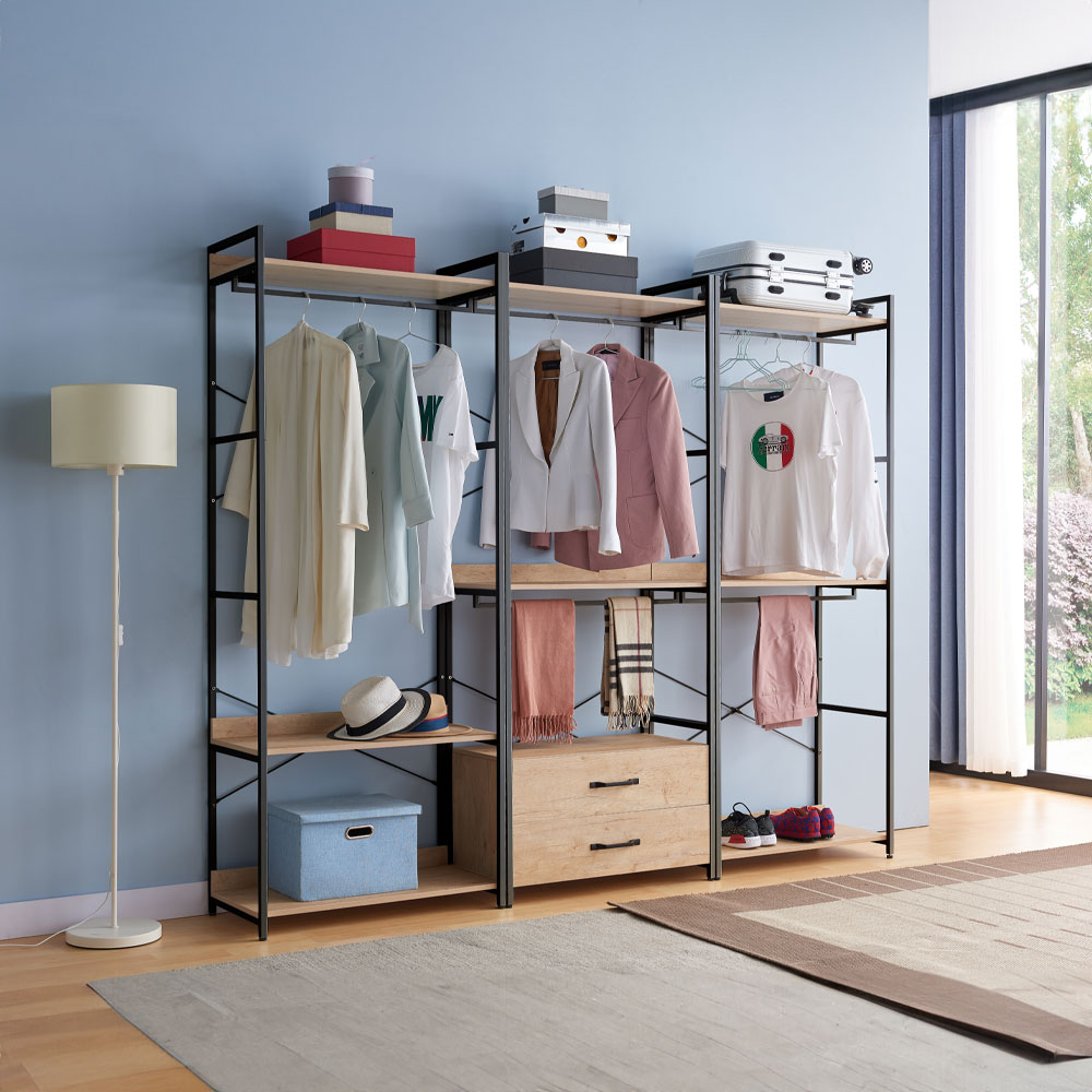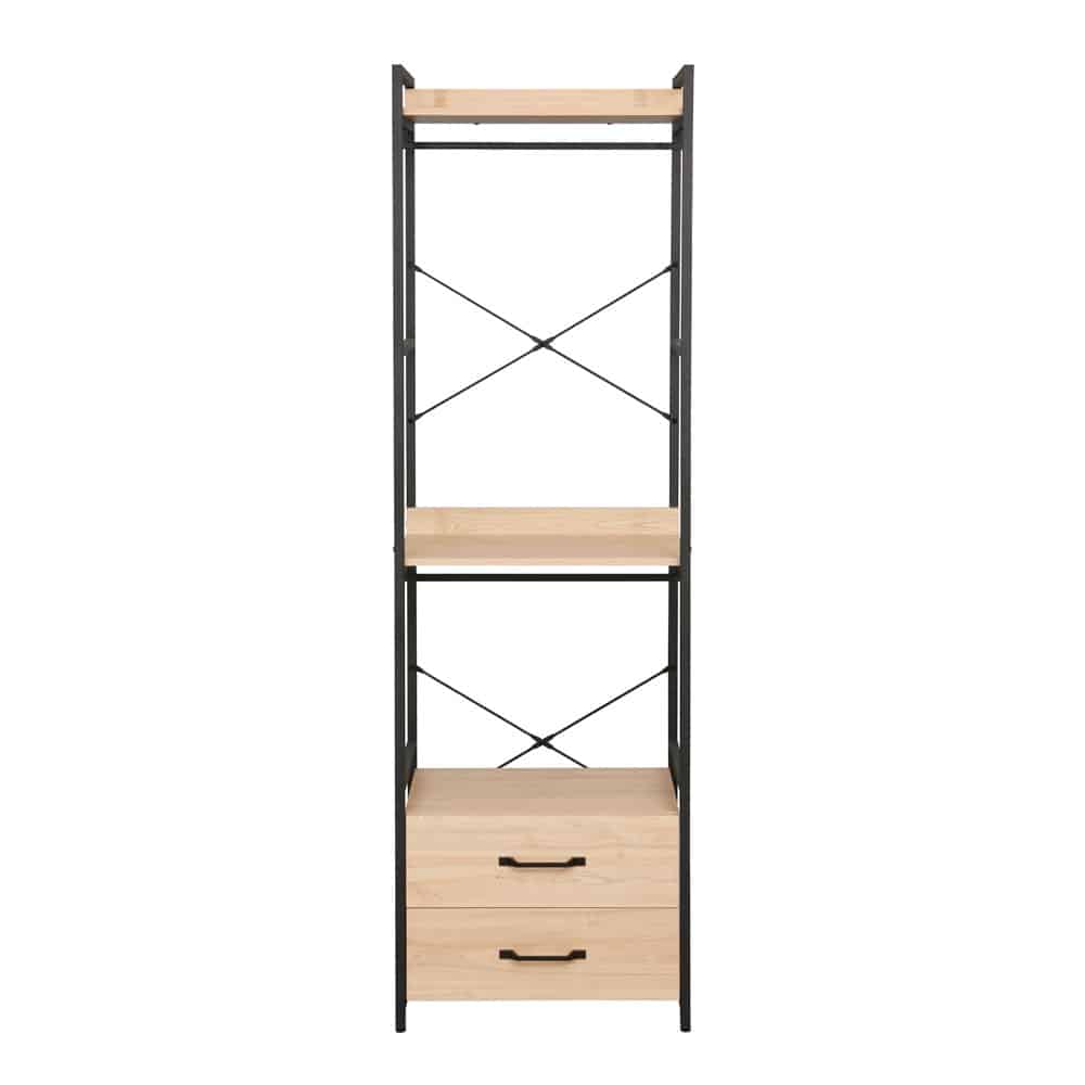 Η ντουλάπα Xenia είναι η ιδανική λύση για να οργανώσετε τα ρούχα και τα αξεσουάρ σας με στυλ και πρακτικότητα. Κατασκευασμένη από μελαμίνη και ανθεκτικό μεταλλικό σκελετό ηλεκτροστατικής βαφής, συνδυάζει τη στιβαρότητα με τη μοντέρνα αισθητική. Διαθέτει ανοιχτά ράφια, ράγα κρεμάσματος για ρούχα και δύο ευρύχωρα συρτάρια στη βάση, προσφέροντας άπλετο χώρο για την αποθήκευση και προβολή των αντικειμένων σας. Με τον industrial σχεδιασμό της, η Xenia προσθέτει μια μοντέρνα πινελιά στον χώρο σας, ενώ ταυτόχρονα παρέχει ευκολία στη χρήση και διαχρονική αντοχή.