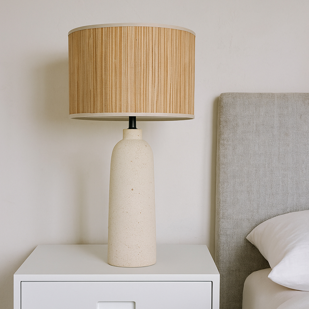 Το φωτιστικό ZED συνδυάζει κεραμική βάση σε μπεζ απόχρωση με καπέλο από bamboo, δημιουργώντας ένα φωτιστικό με eco–friendly χαρακτήρα και zen αισθητική. Το φυσικό υλικό του καπέλου επιτρέπει στο φως να διαχέεται απαλά, προσφέροντας μια γήινη και χαλαρωτική ατμόσφαιρα. Είναι ιδανικό για boho, organic ή japandi διακόσμηση. Το ZED προσθέτει μια αίσθηση ισορροπίας και φυσικής γοητείας σε κάθε χώρο.