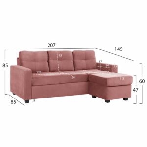 ΚΑΝΑΠΕΣ ΓΩΝΙΑ ΑΝΑΣΤΡΕΨΙΜΗ PAGE ΥΦΑΣΜΑ ΒΕΛΟΥΔΟ ΣΑΠΙΟ ΜΗΛΟ 207x145x85Y εκ.HM3004.12